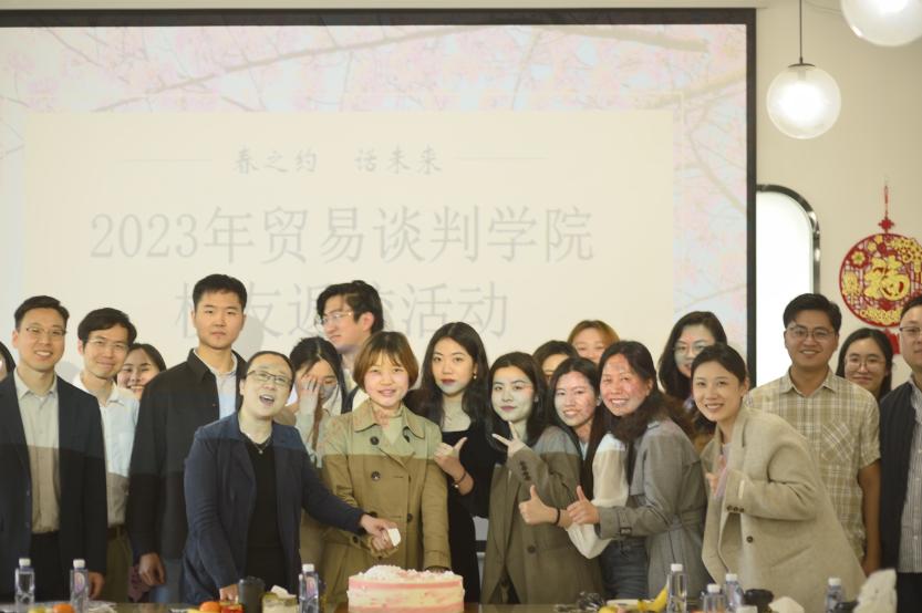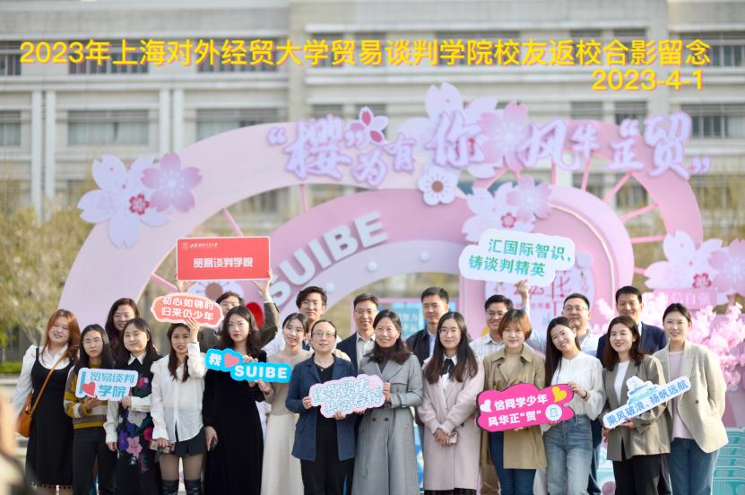 春风送暖,百花迎春。在书香四溢的校园迎来一年中最美好的时刻,4月1日下午,贸易谈判学院在松江校区教工之家举行“春之约话未来”——2023年校友返校日活动。学院党总支书记王文丽,副院长、世界贸易组织讲席(中国)研究院副院长应品广,副院长徐昕、党总支副书记商志民和辅导员辛雅文与返校校友和在校生代表20余人参加本次活动。师生齐集一堂,回忆过去,叙说现在,展望未来.
