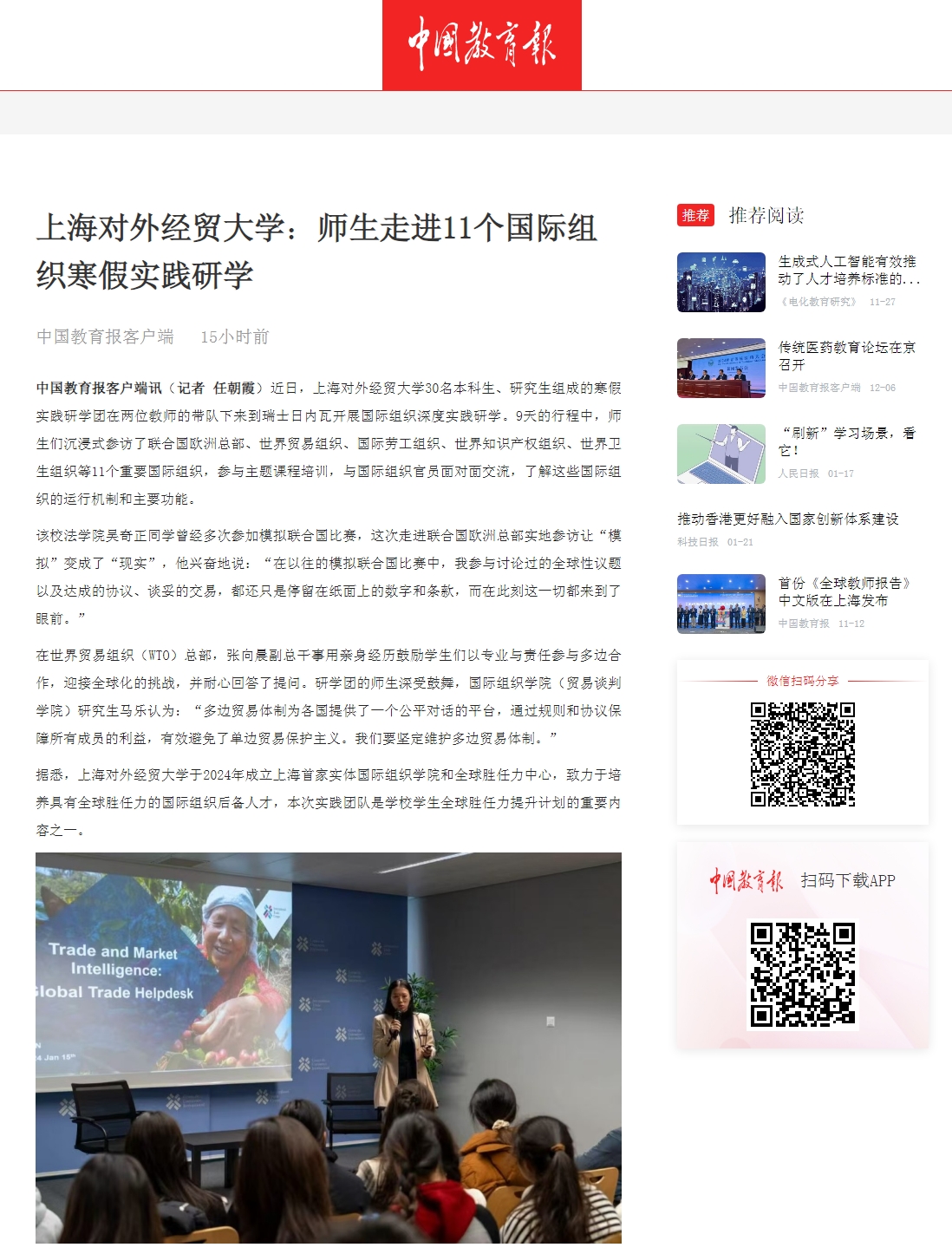 上海对外经贸大学:师生走进11个国际组织寒假实践研学