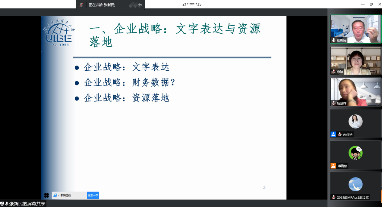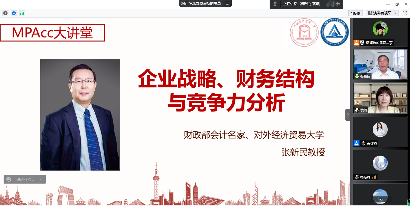 525日,会计学院特邀对外经济贸易大学原副校长、国际商学院原院长、财政部会计名家张新民教授,通过腾讯会议为全校师生开展了主题为“企业战略、财务结构与竞争力分析”主题讲座。会计学院院长裴瑱教授对张新民教授的到来表示感谢和欢迎,并为在场师生介绍了张教授的基本情况。