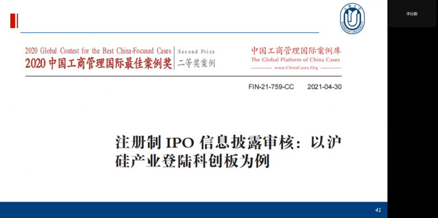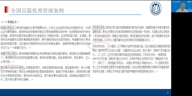 其后,李远勤教授将自己撰写的获奖的第九届“全国百篇优秀管理案例”《抢跑者还是模范生?碧桂园提前采用新收入准则》、“2022中国工商管理国际最佳案例奖”《注册制IPO信息披露审核:以沪硅产业登录科创板为例》两篇教学案例与大家分享,从摘要撰写、过渡用词、特色挖掘、素材寻找、问题发现、案例企业情况、教学提问设计、分析思路、知识点总结、课堂计划进行了细致的分享。