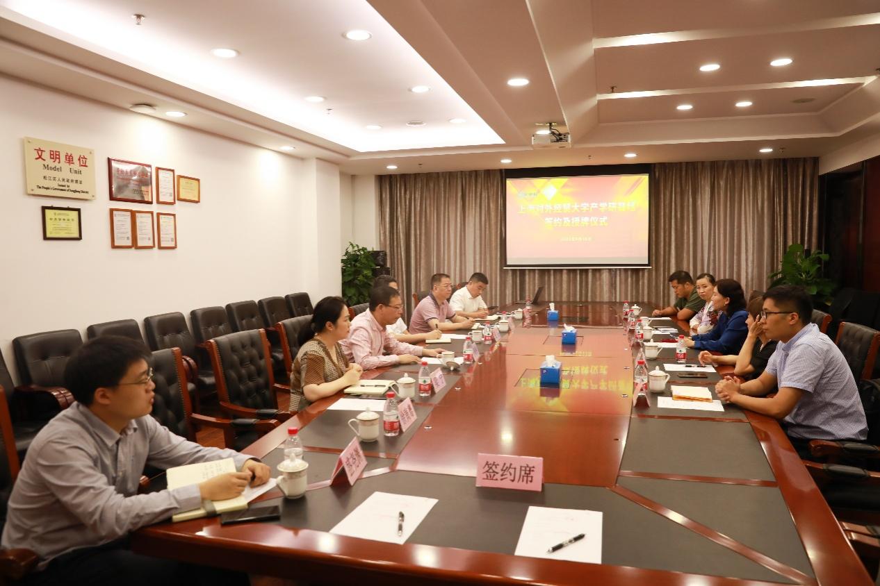 裴瑱和张健分别代表双方签订产学研基地合作框架协议。
