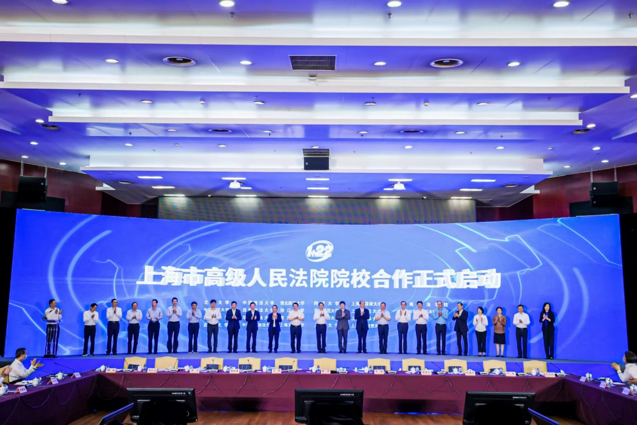 为贯彻落实党的二十大关于“坚持全面依法治国,推进法治中国建设”“实施科教兴国战略、强化现代建设人才支撑”重大决策部署,以及中共中央办公厅、国务院办公厅印发的《关于加强新时代法学教育和法学理论研究的意见》,创新法治人才培养机制,推进司法实务和法学教育、法学理论研究的深度衔接, 6月2日上午,上海市高级人民法院隆重召开院校合作启动会,来自北京大学、中国政法大学等五院四系的9所高校,浙江大学以及上海市的12所高校及科研机构参加了会议。作为上海市高级人民法院的合作院校之一,我校徐永林副校长、法学院乔宝杰院长代表学校参加了会议,并签署战略合作协议。