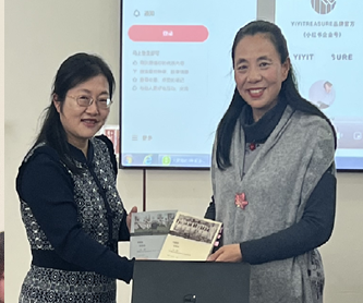 来自东华大学服装与艺术设计学院艺术学理论部的柯玲教授,为学院师生开设了“款款帔帛,美美与共”的精彩讲座。柯玲教授专研文艺民俗学和艺术学理论,曾为英国牛津大学高级研究学者,主要从事非遗保护传承及教育、民俗及民俗教育、国际汉语教育及跨文化交际交流等研究。近年共主持国家及省部级等科研项目10余项,公开出版学术著作13部、大学教材5本,发表学术论文及学术随笔150余篇。她从中国传统服饰中帔帛的文字解析、源起、流变、审美视角等四个方面展开分析和阐述,带领听众跨越古今,联通中外,从形制、设计、功能、材料到艺术表现等方面全方位地纵览和欣赏了帔帛的灿烂文化传承及纷呈的历史影像。讲座的最后,柯玲教授向王艳艳院长赠送了由她主编的《丝路情民族风——“一带一路”沿线百年时尚流行变迁实录》供学院师生学习交流。
