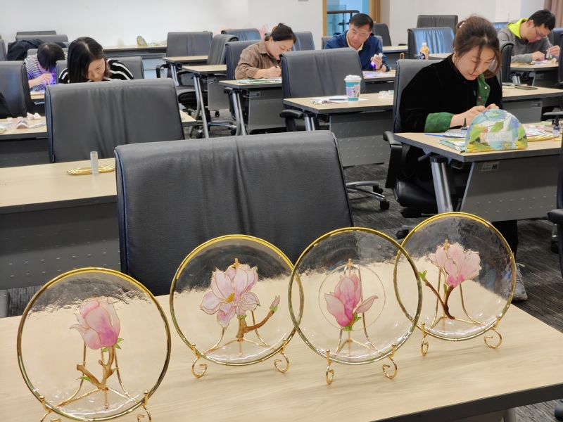 开放教育学院工会举行掐丝珐琅玉兰花盘子手工体验活动