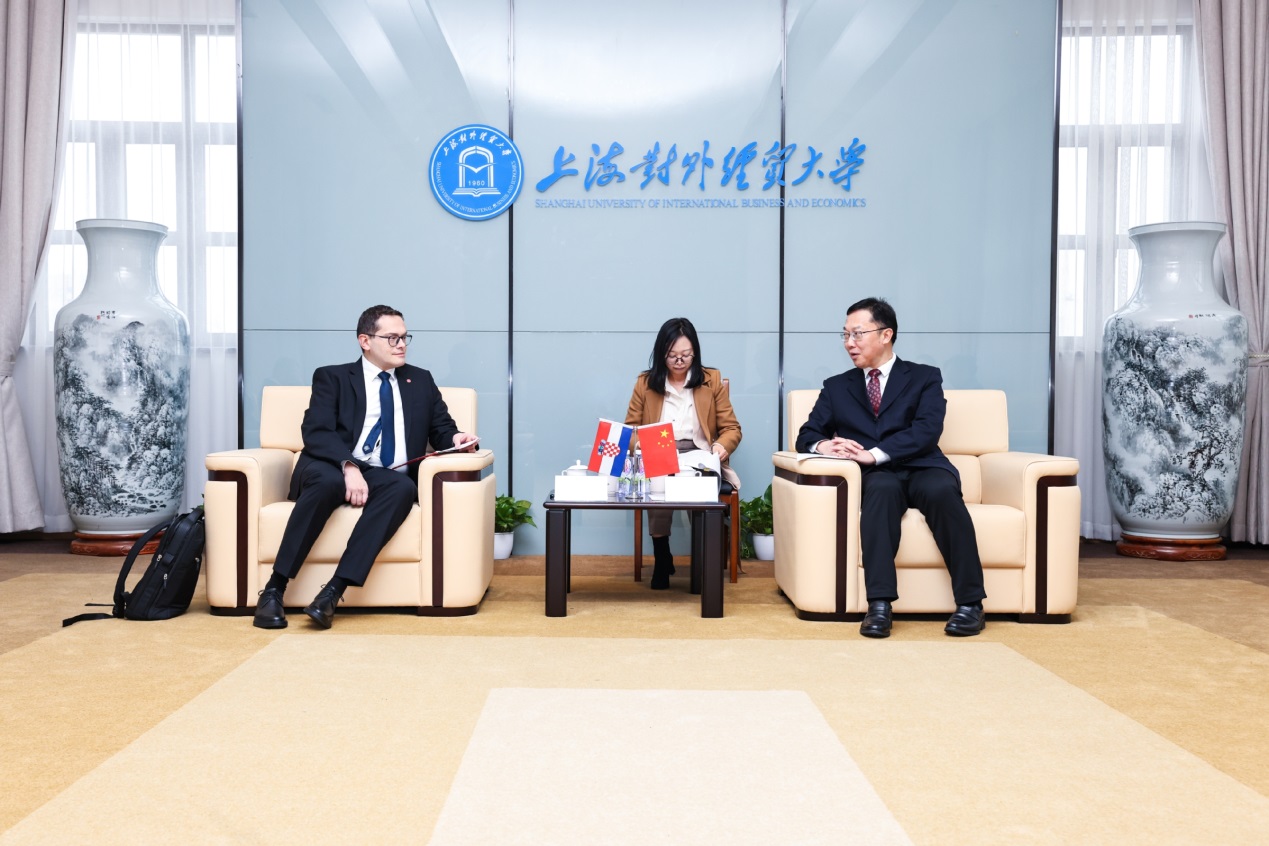 汪荣明对克罗地亚嘉宾来访表示热烈欢迎,并介绍了我校的国际化发展情况和办学特色。他表示,建校60多年来,学校致力于服务中国对外开放,服务上海和长三角地区经济社会发展,服务国家参与全球经济治理需要,不仅培养了一大批高水平国际经贸人才,也积极与世界贸易组织、亚太经济合作组织、联合国贸易发展会议等国际组织开展深度合作。学校注重多学科协同发展,形成了应用经济学和统计学双轮驱动的发展格局。在坚持国际化发展战略的同时,学校还强调“国际化”赋能学科发展与专业建设,并积极探索人工智能、数字信息技术与传统优势学科的新融合、新发展。