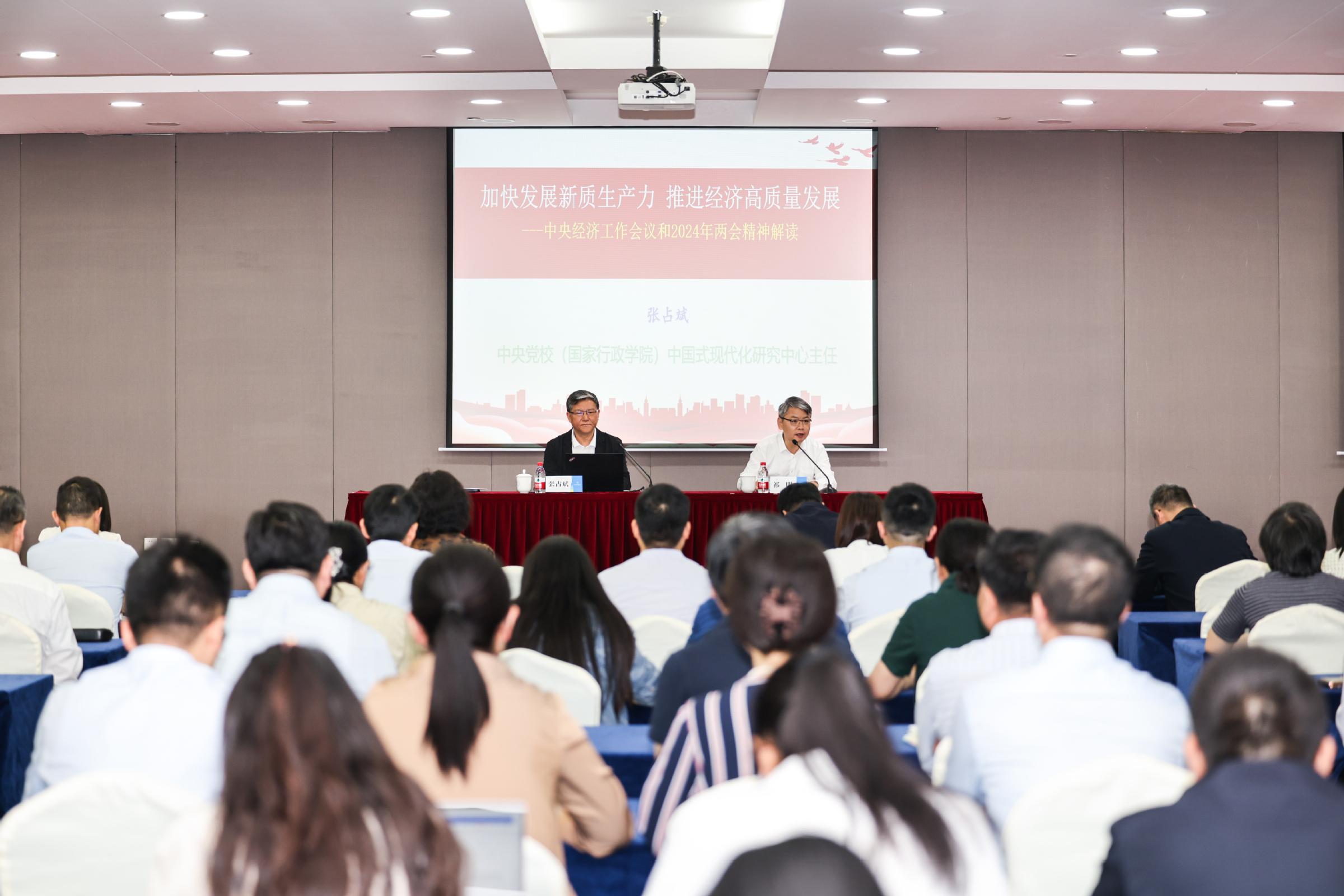 祁明在主持总结时表示,张占斌教授的报告政治站位高、内容丰富、重点突出,对学校师生进一步学习领会习近平总书记关于发展新质生产力的重要论述具有指导作用和借鉴意义。