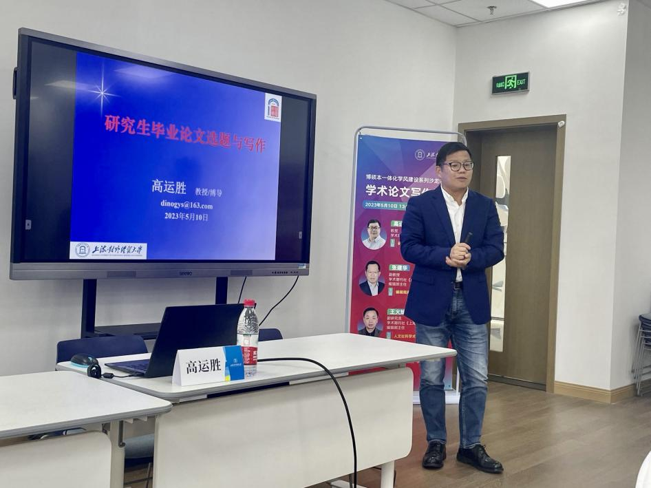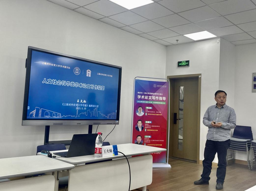 王火灿副研究员以“人文社会科学学术论文写作提要”为主题,介绍了《上海对外经贸大学学报》,讲授了学术论文、人文社科学术论文的独特性以及期刊审稿的基本流程,结合具体案例重点讲解了学术论文应具备的三项基本特征:创新性、严谨性和规范性,为同学们撰写学术论文提供了根本遵循。