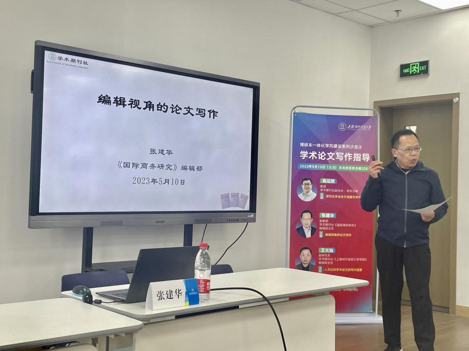 为进一步丰富学生的学术文化生活,加强学术研究指导,5月10日下午,党委研究生工作部、研究生院、学术期刊社联合举办博硕本一体化学风建设系列沙龙之四“学术论文写作指导”,活动在古北校区综合楼205室举办。学校学术期刊社副社长高运胜教授、《国际商务研究》编辑部主任张建华副教授、《上海对外经贸大学学报》编辑部主任王火灿副研究员出席活动并做专题辅导,活动由党委研究生工作部副部长、研究生院副院长乔檀主持。