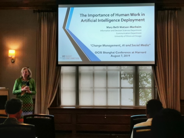 8月7日至9日,由我校承办的AOM OCIS人工智能与管理主题会议哈佛大学举行。会议得到美国管理学会授权和旗下AOM PTC、AOM MC、AOM HR、AOM ODC四个专业委员会支持,来自20多个国家和地区的200多名专家学者出席本次会议。会议分为三部分,分别是:变革管理、人工智能与社交媒体;管理中的人工智能应用;人工智能对管理实践的影响。我校人工智能与变革管理研究院院长齐佳音教授作为会议联合主席之一全程参加本次会议,会议由我校人工智能与变革管理研究院客座教授Emmanuel Monod主持。