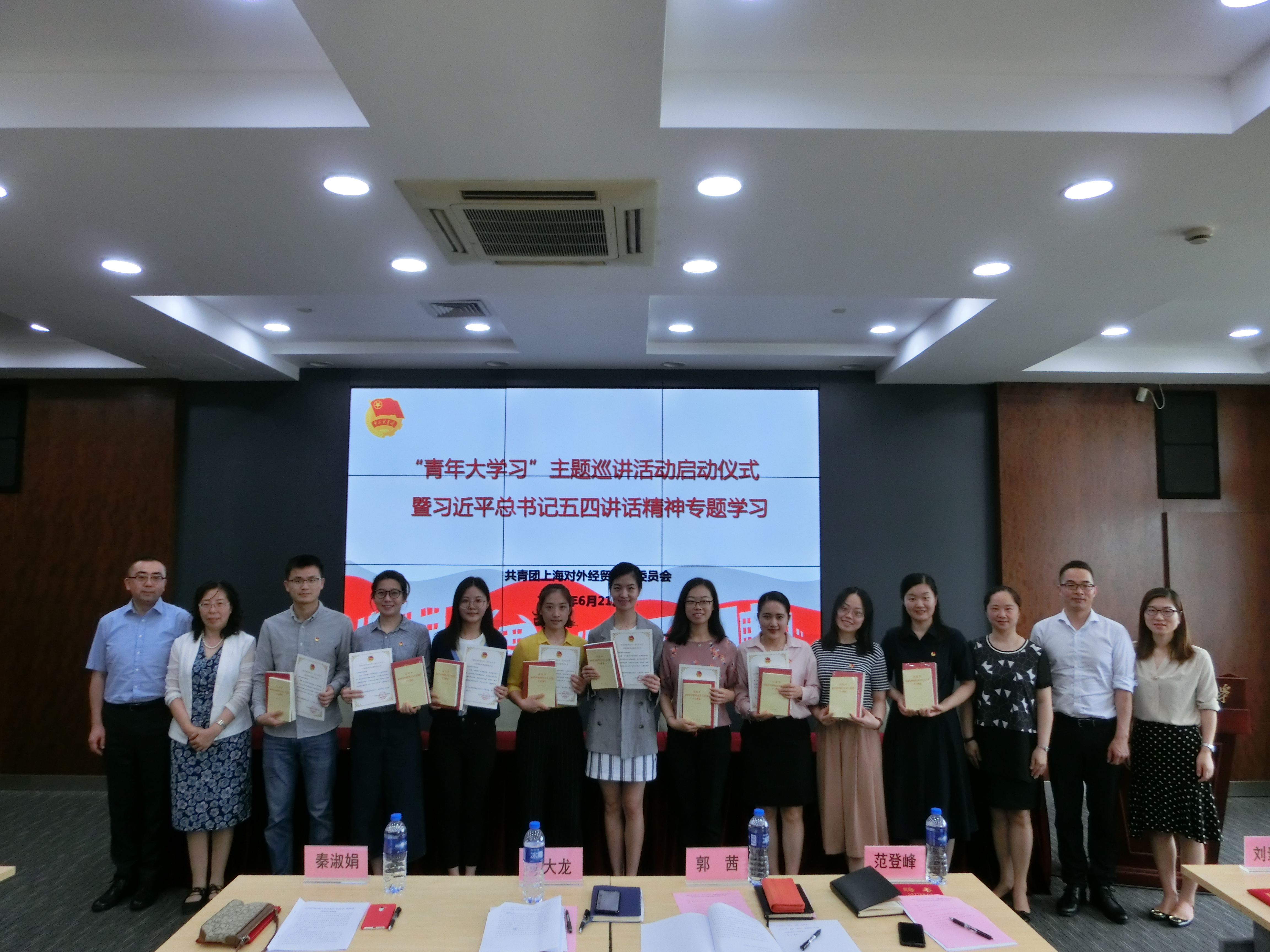 会上,郭茜为承办巡讲活动的国际经贸学院团委授予了“青年大学习”流动红旗。