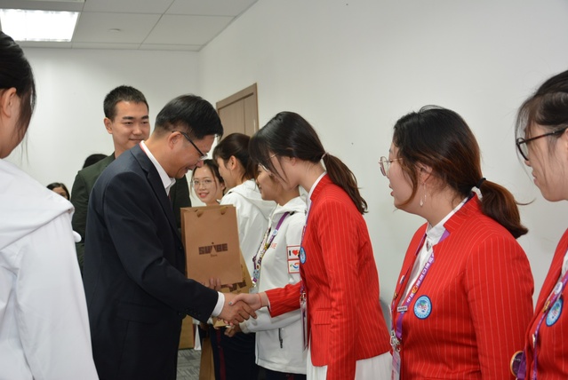 学校领导一行首先来到注册嘉宾接待组志愿者办公室慰问我校的志愿者们,向同学们赠送了学校帆布包、小叶子笔记本、彩虹笔等礼物组成的大礼包,鼓励志愿者们承载学校荣耀,投入工作、用心服务,继续以良好的心理素质、过硬的服务技能、一流的服务水平和热情的服务态度完成好本次志愿服务工作。