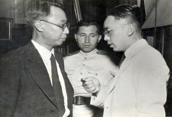 1946年,裘劭恒(右一)说服爱新觉罗·溥仪在远东军事法庭出庭作证