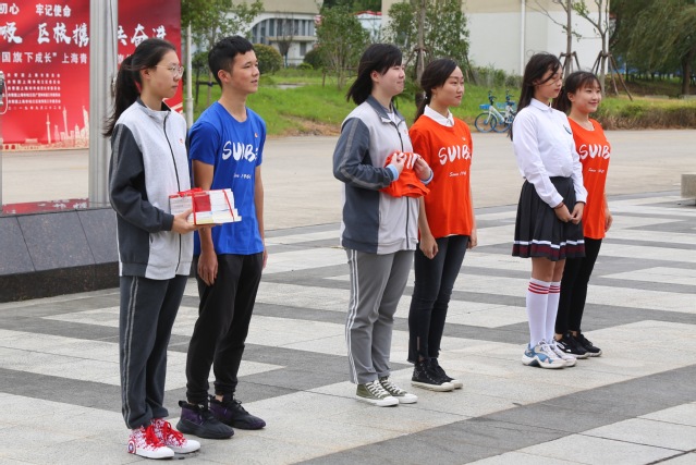 五星红旗下,团员代表张子熠发表了题为《敢有青云志,莫欺少年穷》的演讲,用铿锵有力的声音表达了当代青年志达青云、荣校报国的决心,也抒发了对祖国母亲无尽的热爱之情。紧接着,由7位优秀暑期社会实践项目代表同学,也以朗诵的形式汇报自己的所思所感,向祖国70周岁生日献礼。