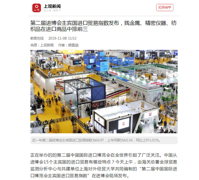 我校在第二届进博会期间编制和发布“ITI”,得到了媒体的广泛关注。发布会后,文汇、上观等媒体第一时间发布了相关报道。
