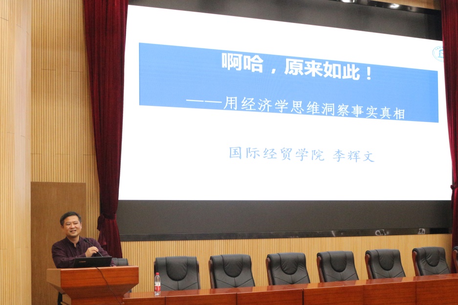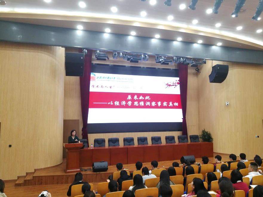 “原来如此——学术与人生”系列讲座面向国际经贸学院全体学生,通过讲座为学生讲授经济学不同领域的研究方法、进展、成果和应用,由青年科研骨干教师以生动有趣的方式带领学生将课堂中所学的经济学原理延伸至真实世界,解读和探析现实生活中的经济学现象。系列讲座旨在结合当前经济形势和社会需求,服务于科学研究和实际,激发学生自主学习和研究兴趣,拓展和培养科学思维和批判性思考能力,拓宽研究思路,着力培养学生至诚报国的理想追求、敢为人先的科学精神、开拓创新的进取意识和严谨求实的科研作风。