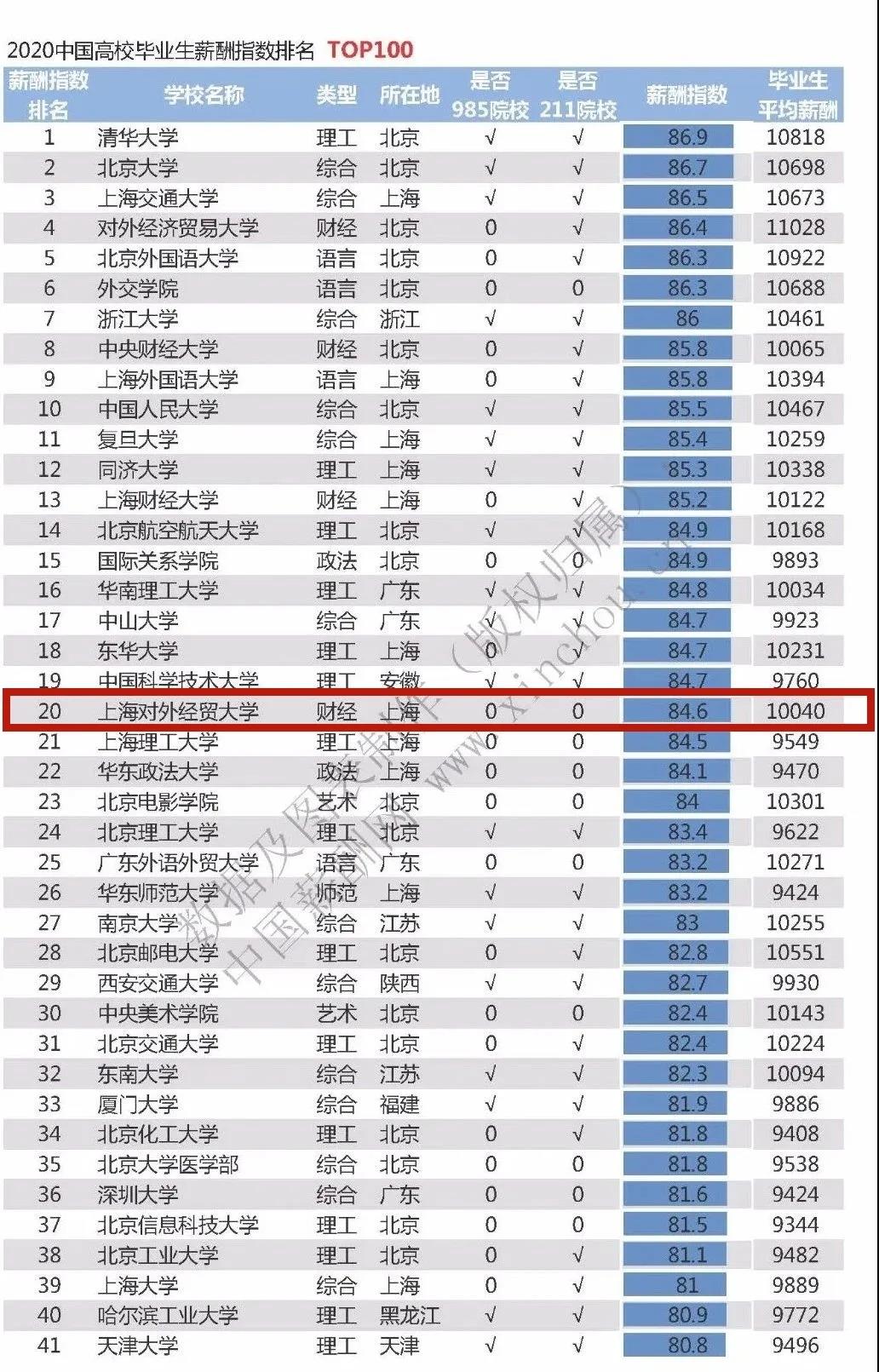 7月13日,中国薪酬指数研究机构发布《2020中国高校毕业生薪酬指数排名》。上海对外经贸大学薪酬指数位列全国第20位,上海市属高校第1位。