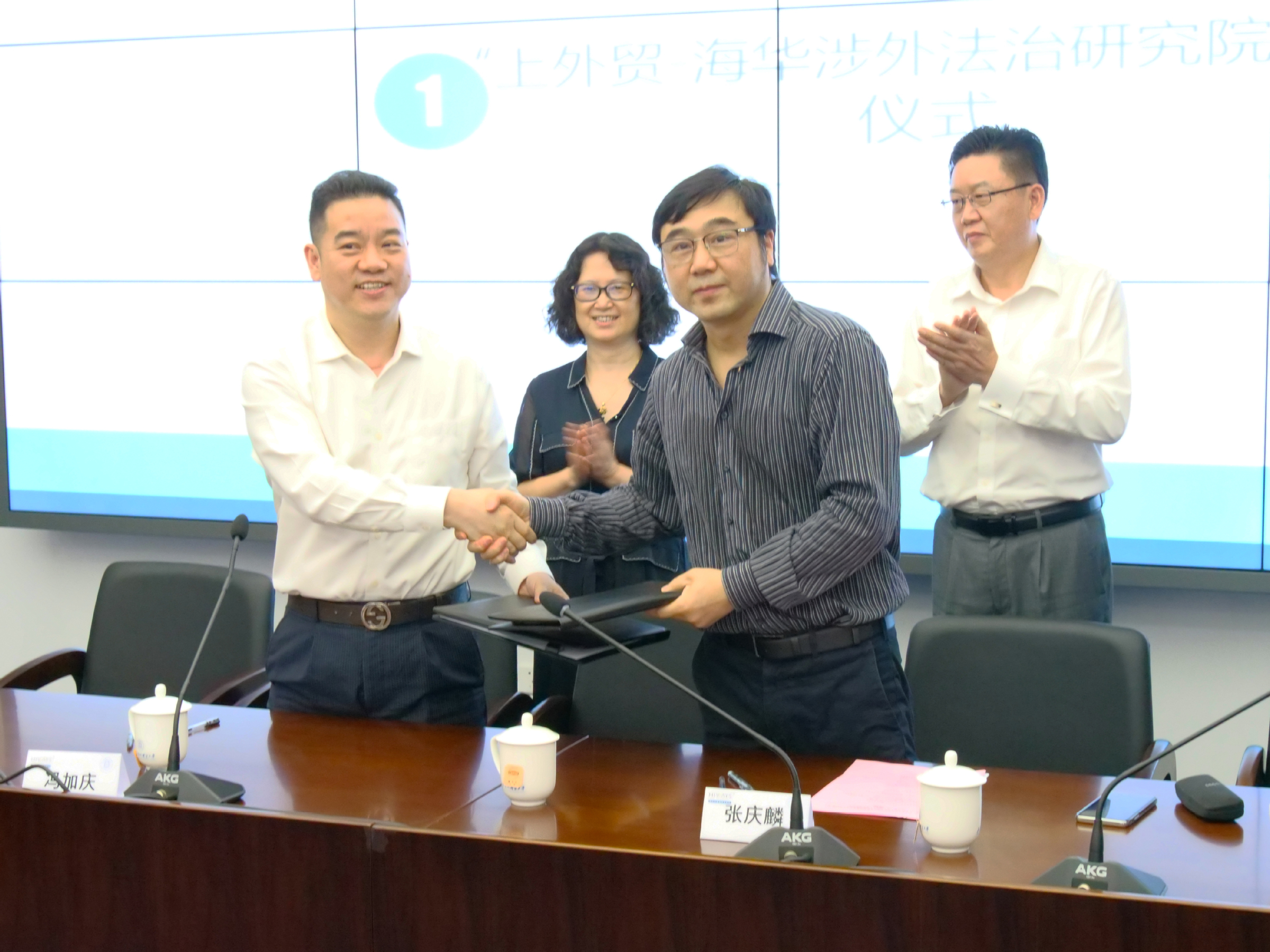 在与会嘉宾的见证下,张庆麟与冯加庆代表合作双方签署了《上海对外经贸大学-海华永泰律师事务所合作协议》。成立涉外法治研究院旨在通过对相关涉外法律理论和实务问题的研究,对上海市和国家全面对外开放战略的实施提供高端智库支持。
