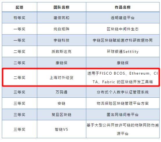 为进一步培育区块链应用实践、推动建立区块链技术和产业发展生态环境,7月31日,由工信部指导,中国电子技术标准化研究院、浙江省杭州市萧山区人民政府主办的第四届中国区块链开发大赛在浙江省杭州国际博览中心隆重举行。由我校人工智能与变革管理研究院选派的参赛队经过初评、复评和路演环节的三轮竞争,最终荣获大赛二等奖,该成绩在全国各高校参赛队中排名第一。
