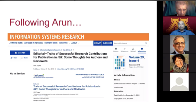 8月1日-2日,由美国管理学会(Academy of Management, AOM)的管理咨询分会 (Management Consulting Division, MCD)、组织沟通与信息系统分会(Organizational Communication and Information Systems, OCIS)主办,我校人工智能与变革管理研究院协办的2020美国管理学会年会前会-2020人工智能大会在线上举办。信息系统研究领域顶级刊物《MIS Quarterly》主编Arun Rai教授、《Information Systems Research》主编Alok Gupta教授应邀为大会作主旨报告,《MIS Quarterly》前主编Carol Saunders教授以及来自MISQ, ISR, JMIS(Journal of Management Information Systems), Management Science等顶级期刊的多名资深编辑参加会议并作学术报告。