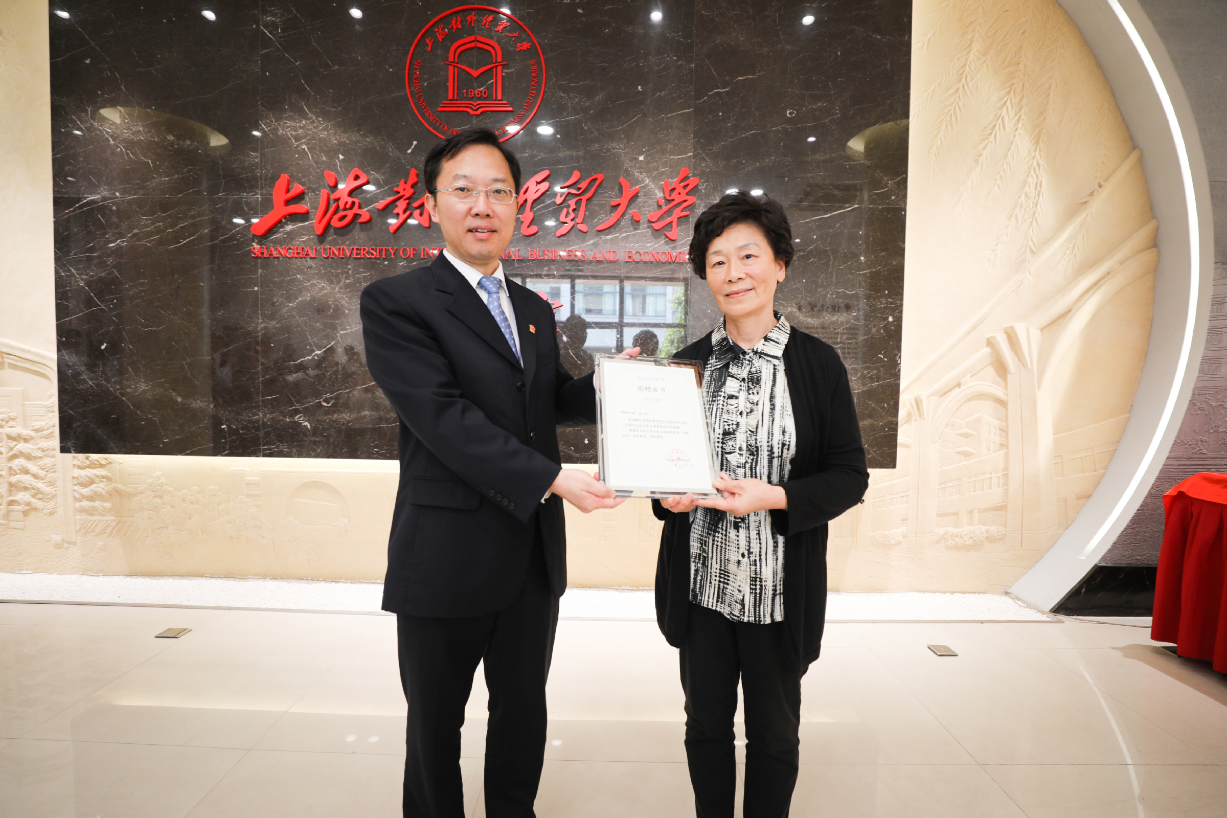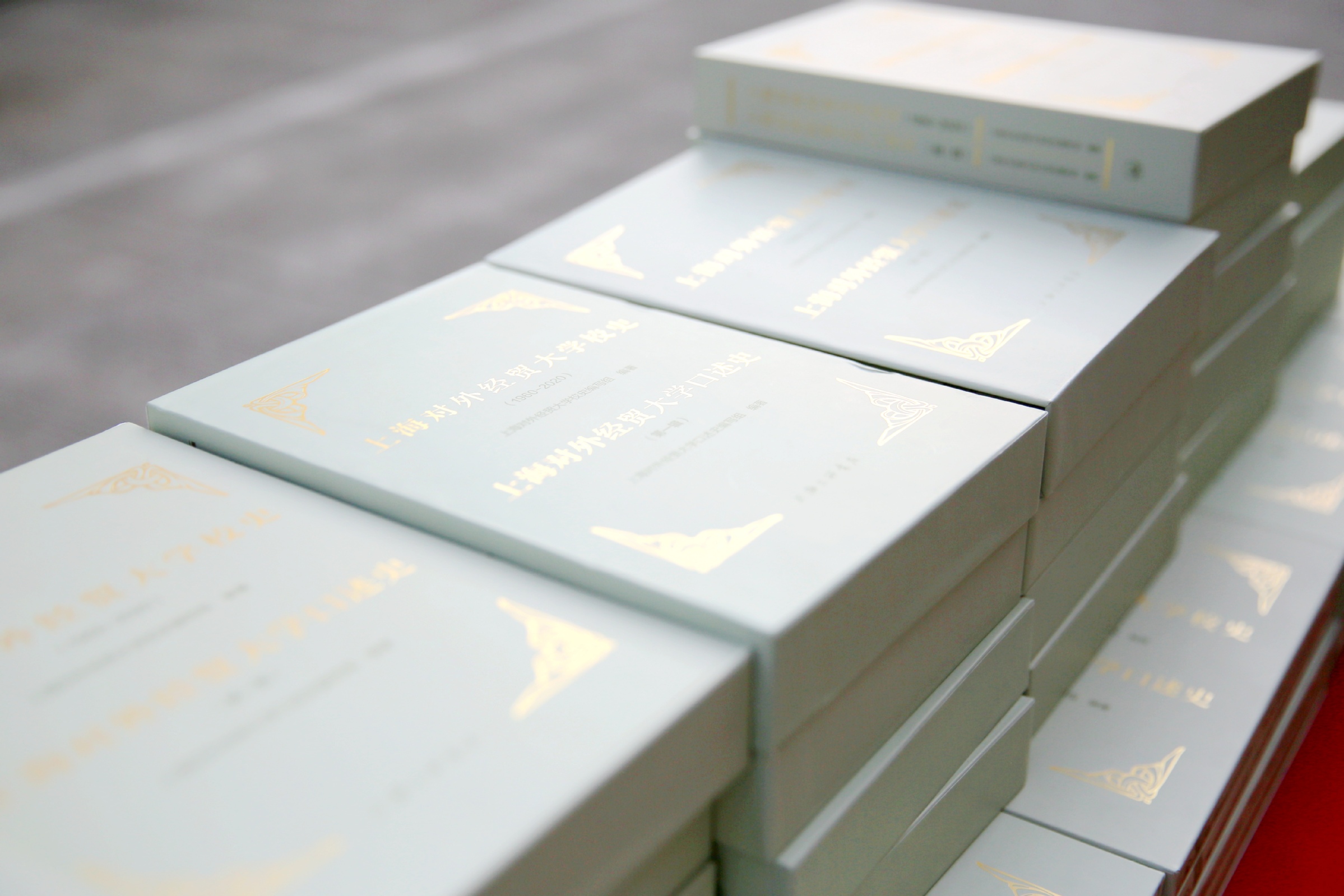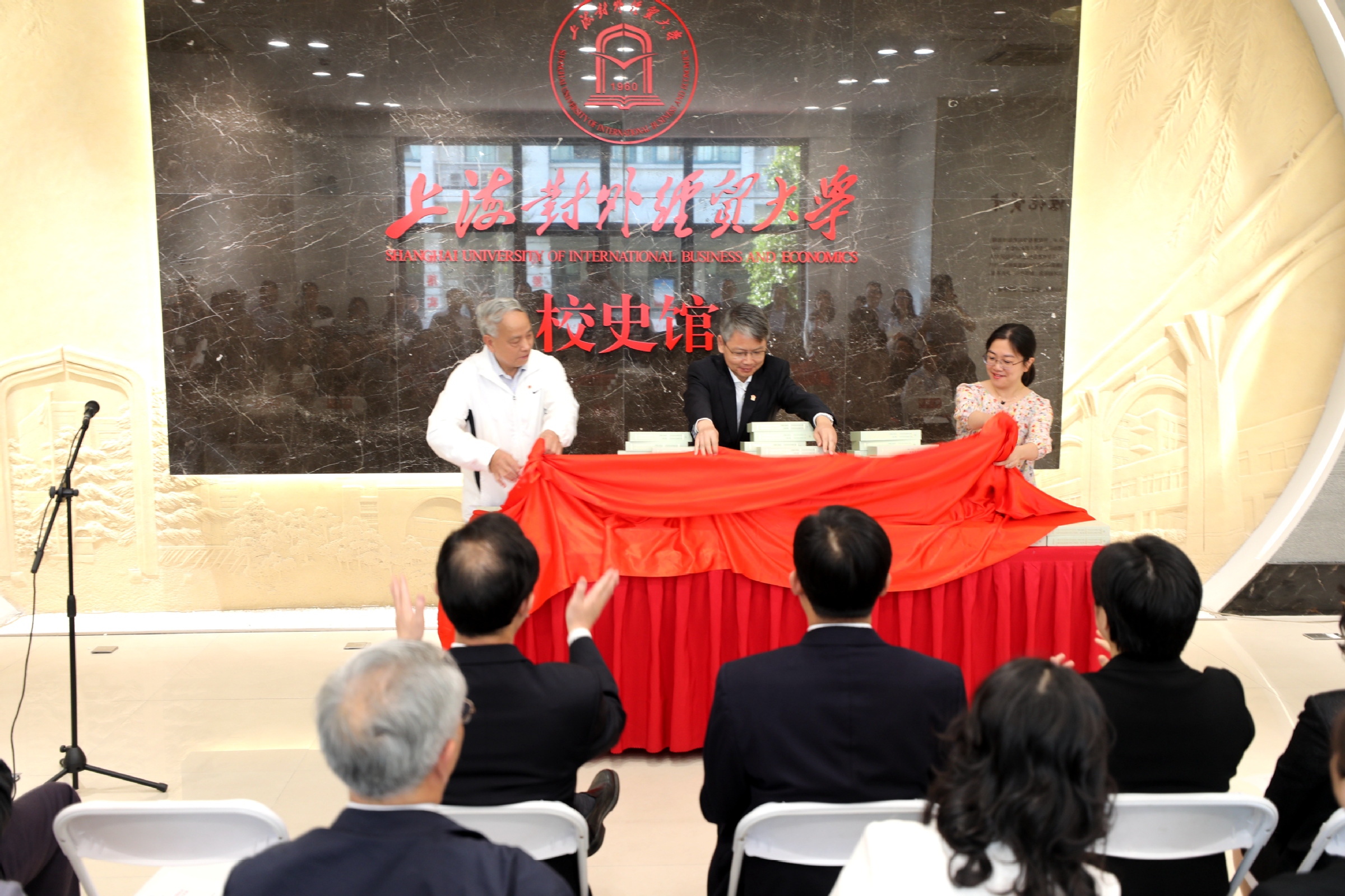 作为本次仪式的重要环节,祁明、姚霏和高永富共同为《上海对外经贸大学校史(1960-2020)》和《上海对外经贸大学口述史(第一辑)》揭幕。陈洁向教师和学生代表赠送了校史和口述史。