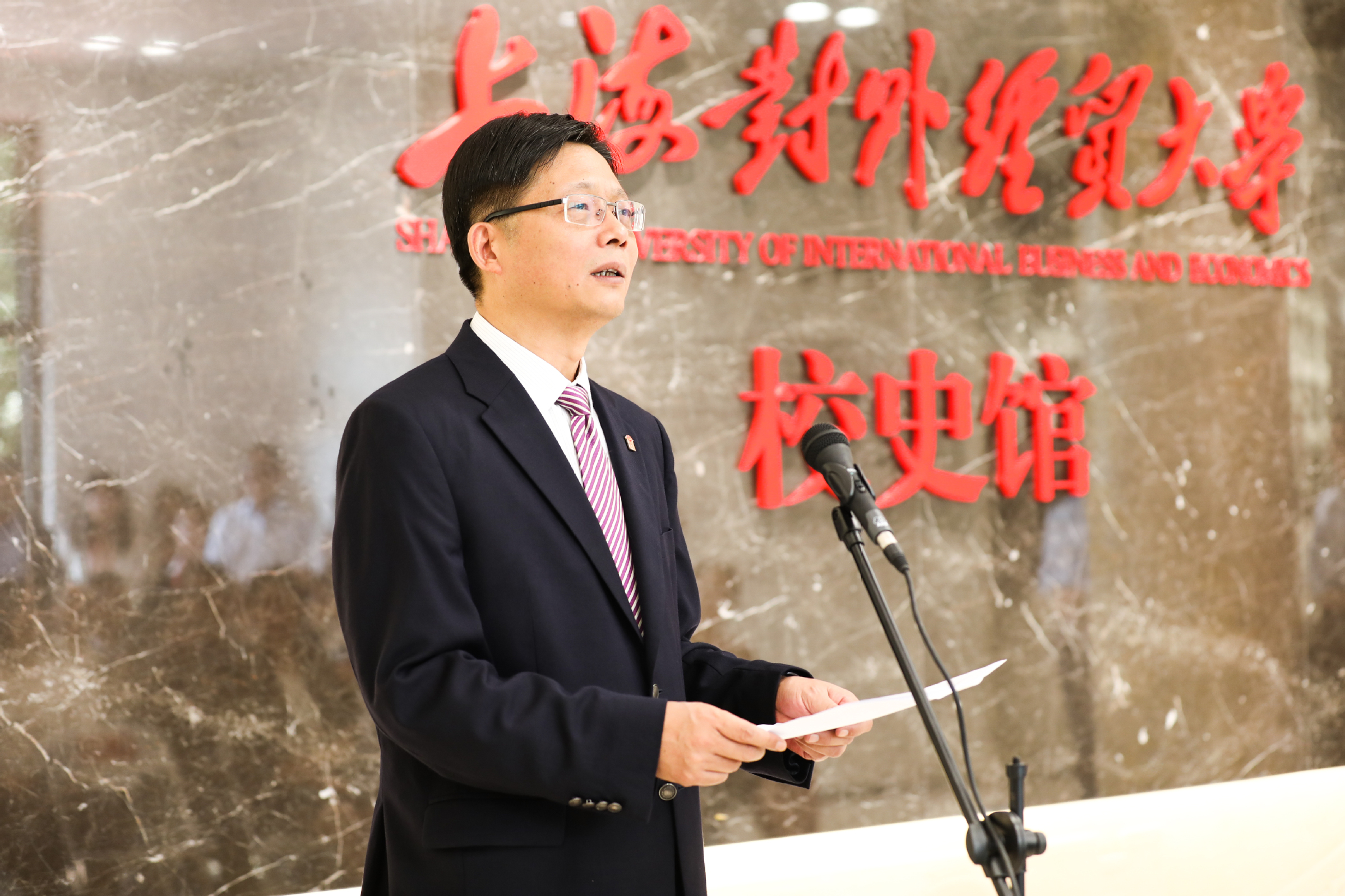 殷耀为本次仪式致辞,代表学校向莅临开馆仪式的各位领导、来宾、老师们、同学们表示热烈欢迎,向校史馆顺利完成升级改造、开馆迎宾表示热烈祝贺。殷耀指出,学校已经走过了一甲子征程,学校始终与国家和民族发展同频共振、休戚与共,为国家培养一流经贸人才,为服务贸易强国战略做出了积极贡献。校史馆、校史是记录和传承学校办学历史、办学精神、办学理念的重要载体,也是学校十分重要的文化阵地和精神高地,它承载和传递了学校居安思危的忧患意识、百折不挠的奋斗精神和矢志不渝的坚定信念,这是学校在长期办学历程中形成的文化基因,也是上经贸大人身上的文化底色。殷耀回顾了本次校史馆改造升级的过程,向参与校史馆建设和校史编撰工作的同志们表示衷心的感谢。最后,殷耀希望学校各单位、各部门以校庆60周年为契机,进一步加强校史研究,深入挖掘学校历史文化的丰富内涵,创新校史育人新模式,深化校史校情教育,充分发挥校史志愿讲解团的示范作用,把上经贸大人的奋斗精神转化为荣校报国的实际行动,为学校新时代的征程创造更辉煌的成就。