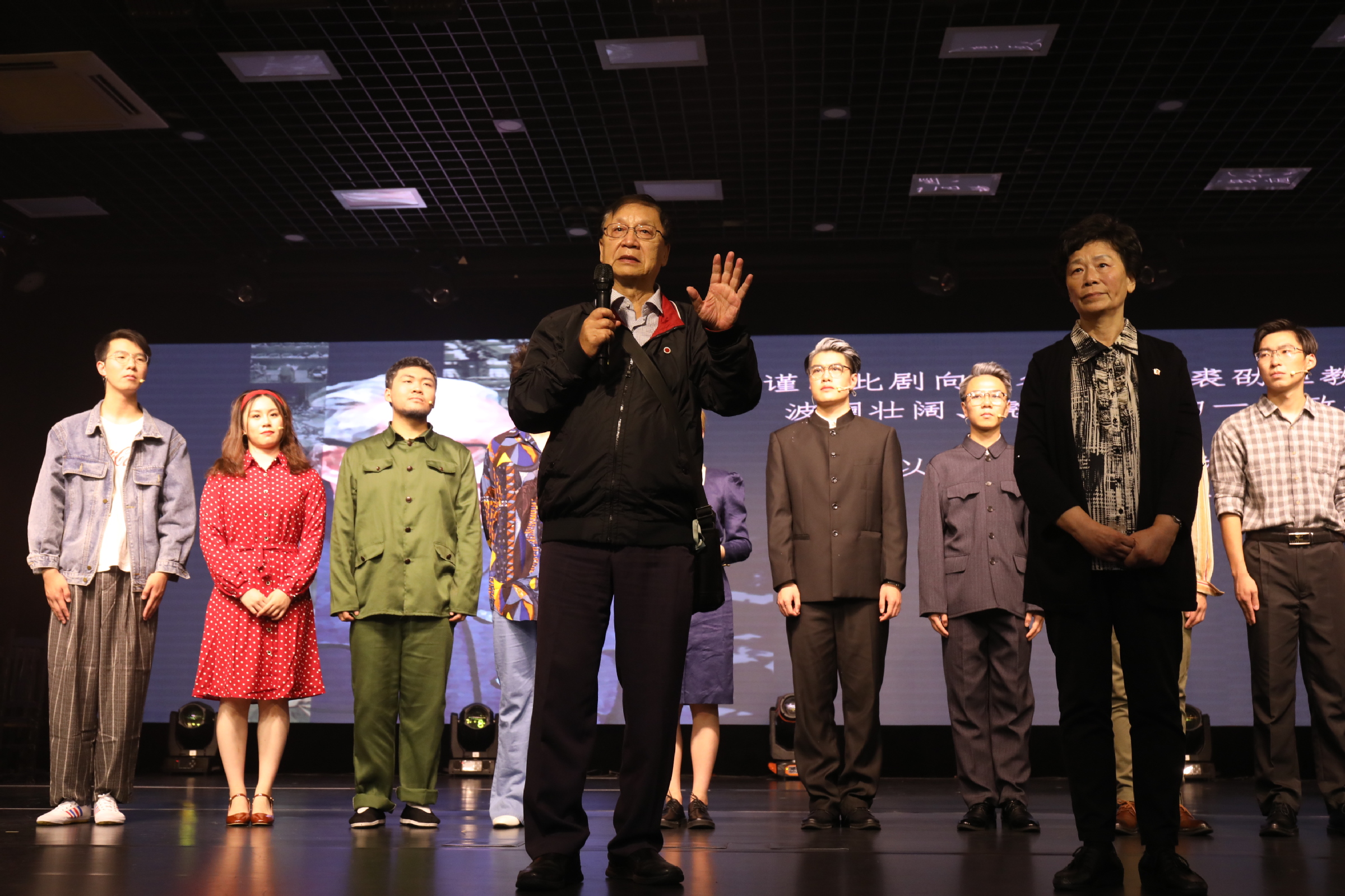 1011日晚,大师剧《裘劭恒》在信息楼507人报告厅倾情首演,为60周年校庆献礼。全国政协常委、上海市政协副主席、我校杰出校友、裘劭恒教授首位研究生周汉民,裘劭恒教授长子裘寿一、次女裘斌,全体校领导,兄弟学校领导,裘劭恒教授生前同事、好友和学校师生代表近500人观看了演出。
