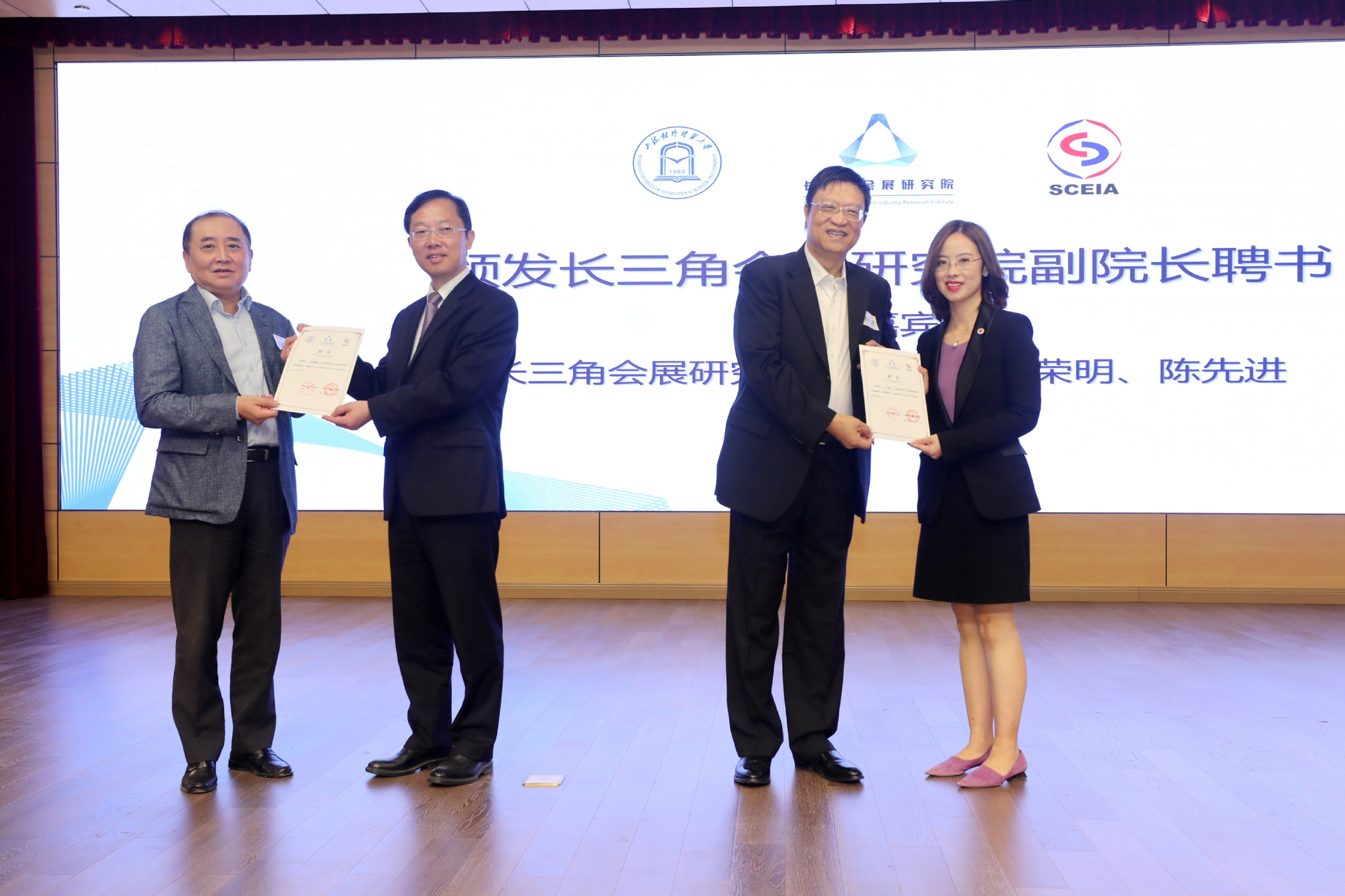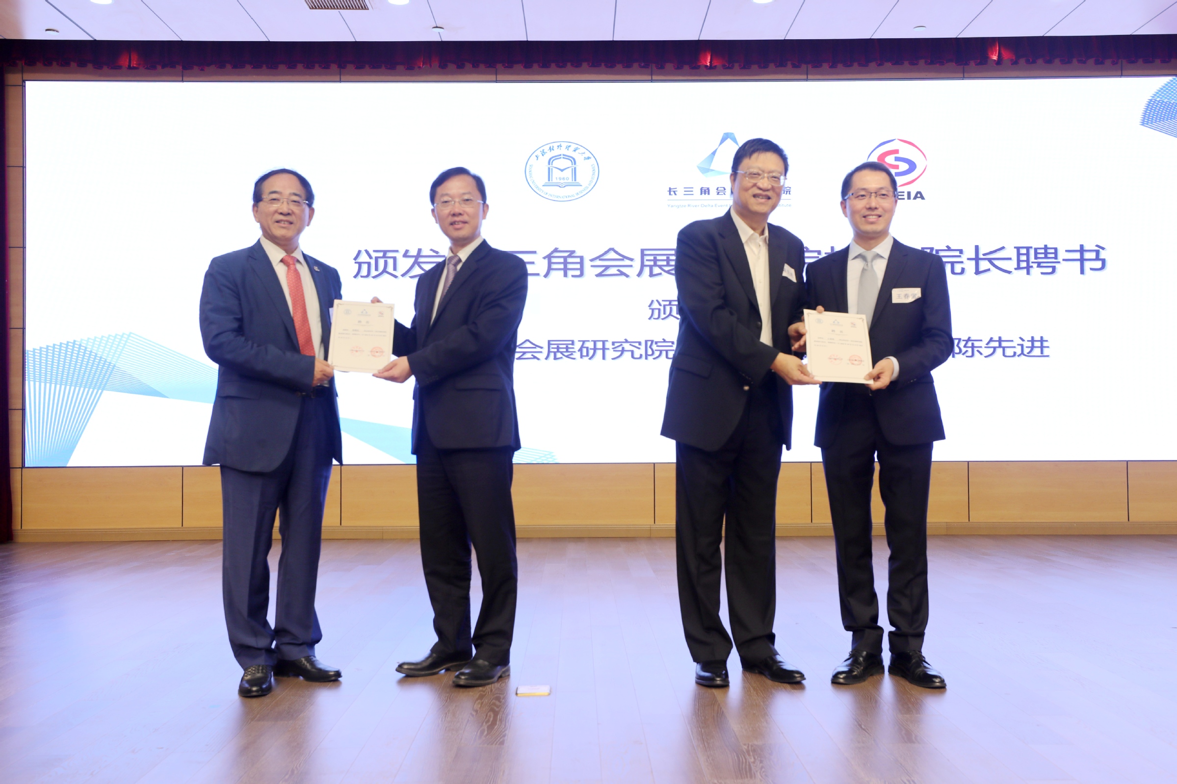 为了保证长三角会展研究院的高水准,长三角会展研究院在一市三省范围内聘请了19位知名专家学者、会展业管理部门官员和行业协会负责人组成首届专家委员会。桑敬民宣读长三角会展研究院专家委员会名单,三省一市商务主管部门领导、长三角区域合作办公室领导、长三角会展研究院联席院长共同为上海市国际贸易促进委员会副会长顾春霆等专家颁发了聘书。同时,长三角会展研究院聘请桑敬民、王春雷为联席执行院长,聘请上海市会展行业协会秘书长屠建卿和我校会展经济与管理系主任丁烨为联席副院长。