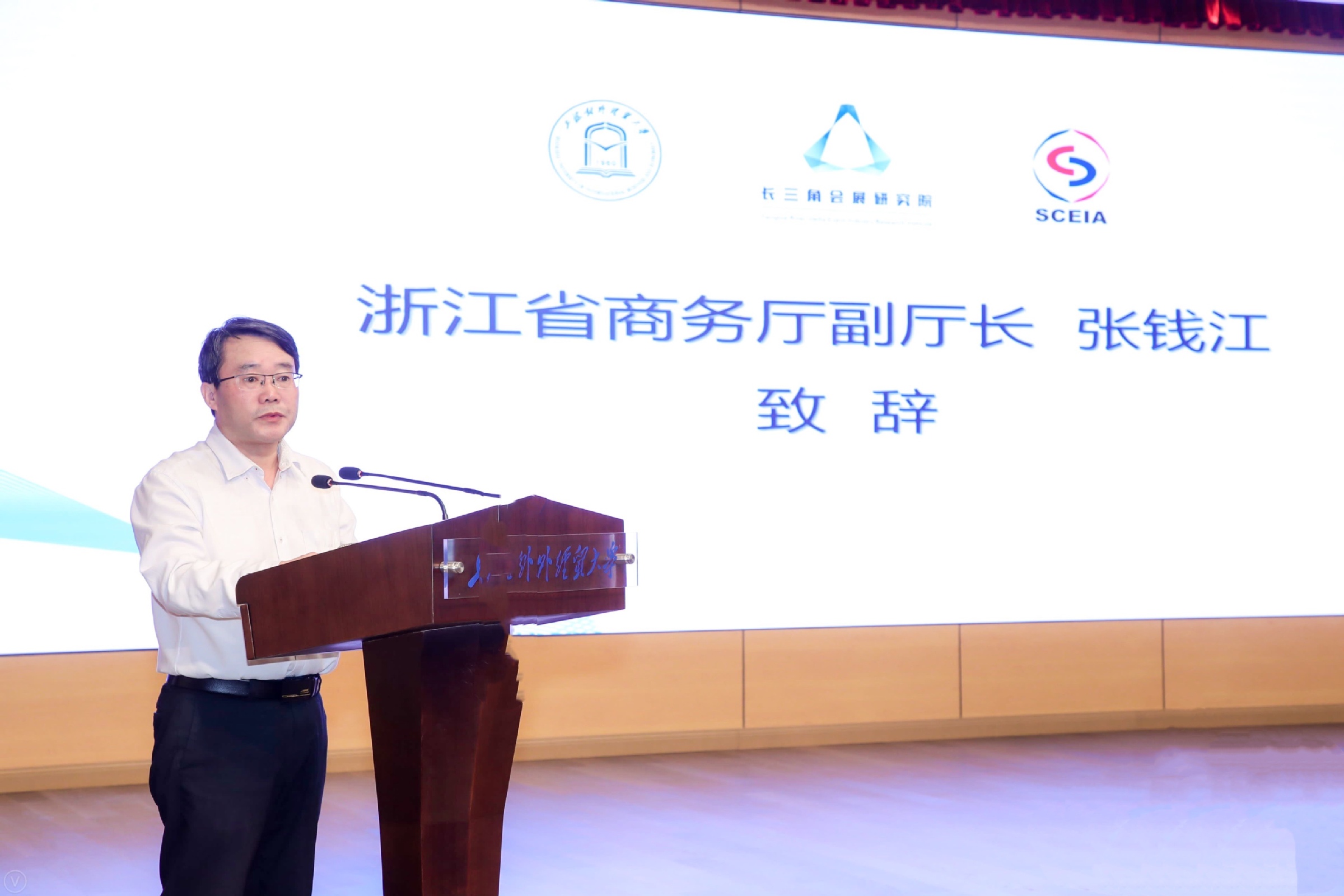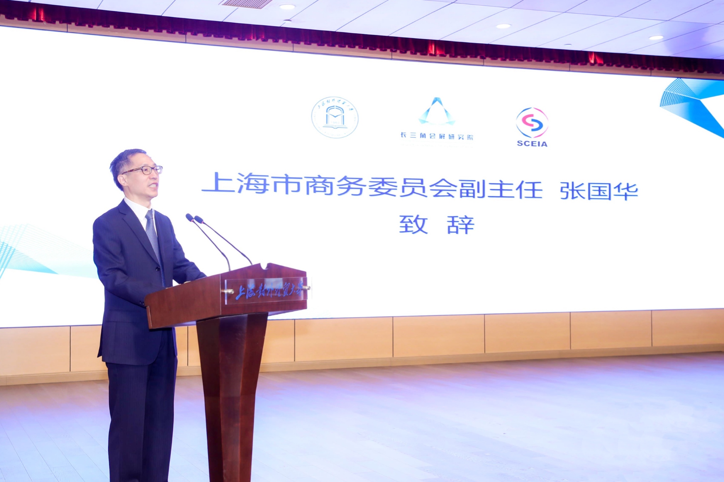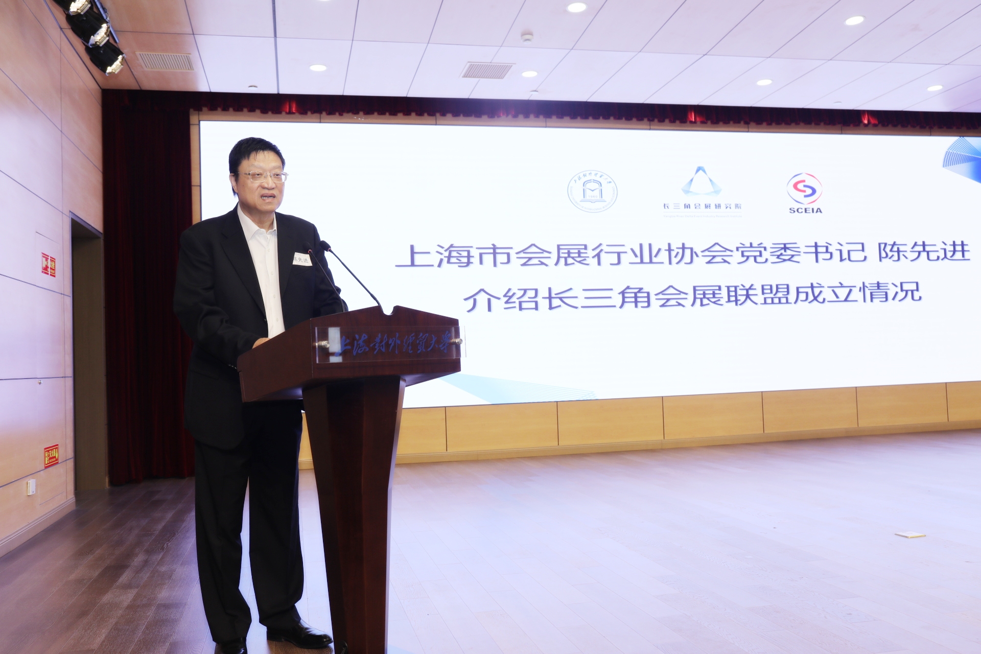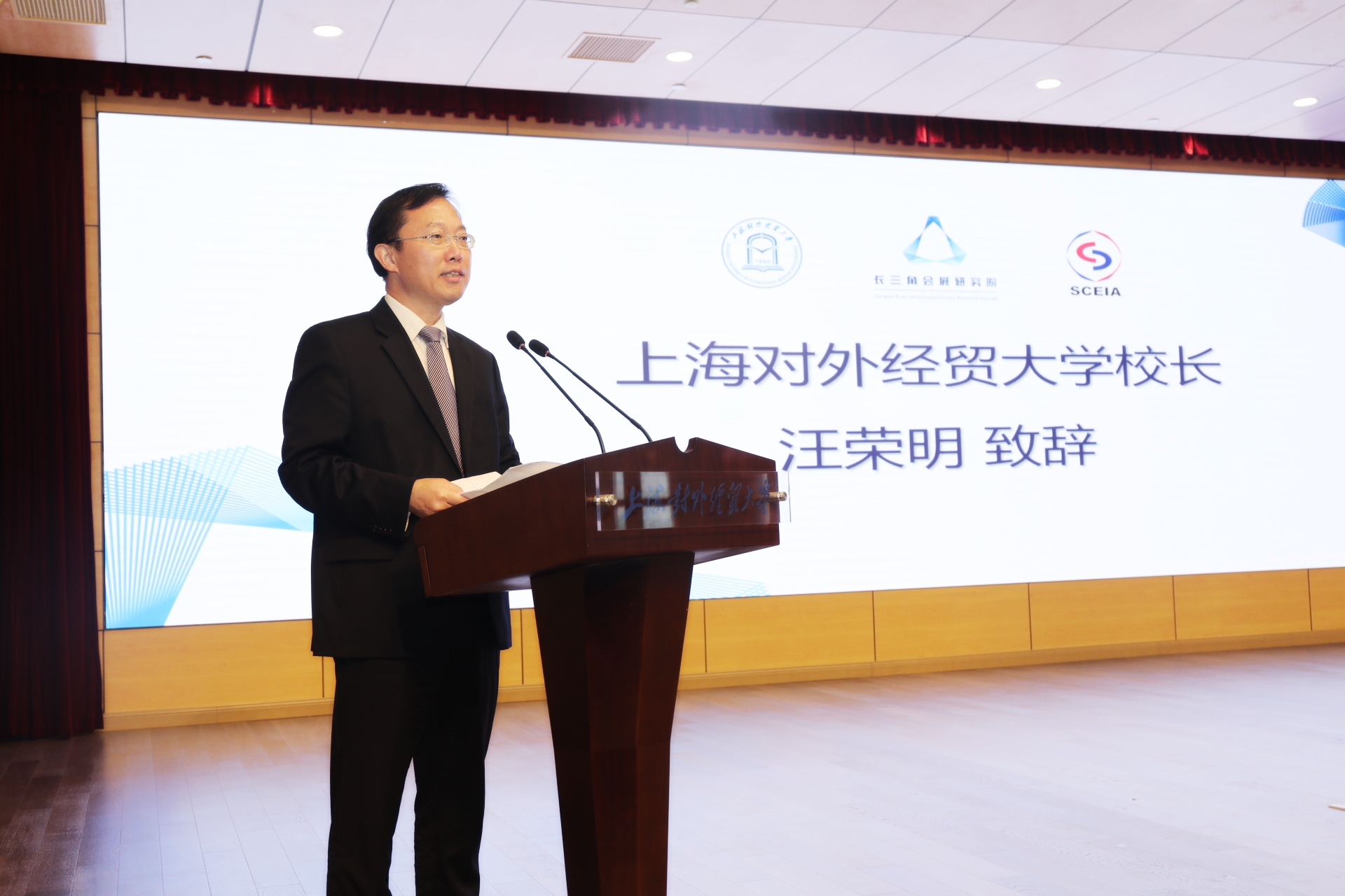 汪荣明在致辞中代表学校向与会嘉宾表示诚挚的欢迎。他指出,会展活动作为一种促进经济、贸易往来和政治、文化交流的重要途径,在国际交往日益频繁、经济全球化加快发展的今天日益受到世界各国的广泛重视。长三角是我国会展业最具活力与最有竞争力的区域。“进博会”落户上海,为长三角会展业新一轮发展迎来了千载难逢的机遇,但如何抓住这一历史机遇,加强长三角会展业的区域协同发展,更好地发挥会展业在服务长三角区域一体化国家战略中的作用,是当前亟待研究的问题。长三角会展研究院的成立不仅是加强长三角会展业区域协同发展的重要工具,也是更好地发挥会展业在服务长三角区域一体化国家战略中特殊功能的有力抓手。