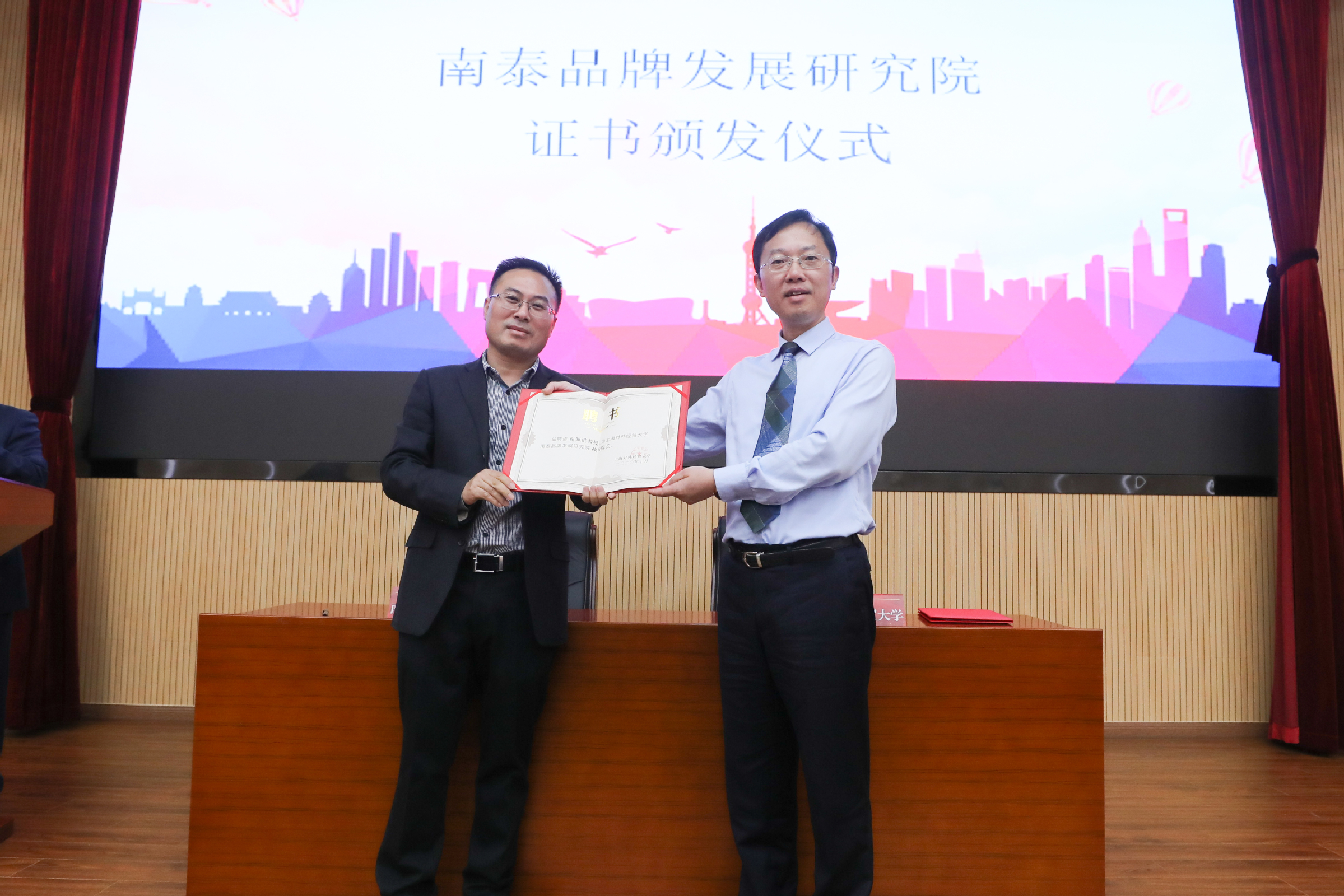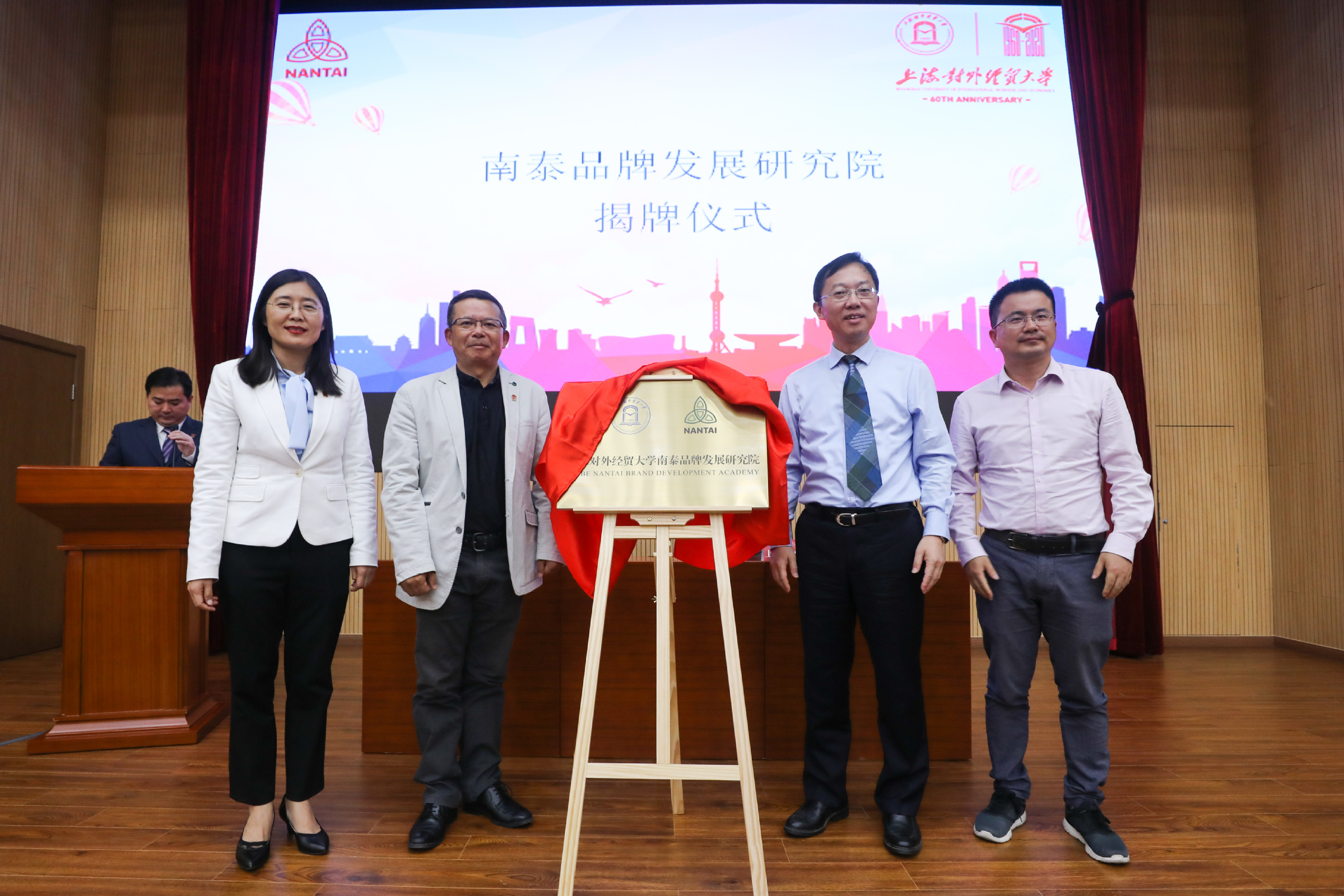 10月17日,上海对外经贸大学南泰品牌发展研究院揭牌仪式在松江校区思源报告厅隆重举行。校长汪荣明,我校杰出校友、南泰君霖集团董事长陈利民,上海财经大学博士生导师王新新,科研处处长何欢浪,校友工作联络处副处长晏琼、工商管理学院领导班子成员、全体教师和学生代表出席揭牌仪式,仪式由工商管理学院党委书记刘根春主持。