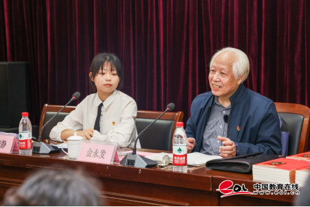 金永发老师,今年81岁,是原上海对外经贸大学宣传部部长,特邀组织员、关工委副主任,19岁当兵,26岁入党。金永发老师两次见到毛泽东主席,1968年1月28日出席全军学雷锋先进代表大会,受到毛泽东等党和国家领导人的接见;1970年出席全国英模代表会议,登上天安门观礼台观礼,又一次见到了毛泽东主席。