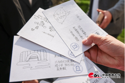 “书香传万里,心系沪藏情”,活动最后,方塔小学学生以实际行动传递雷锋精神,为西藏日喀则仲巴县琼果乡小学学生手写明信片。有的孩子自发地在明信片中手绘了校园美景插图,带着上海三月的春意与由衷的祝福,连同准备的“爱心礼包”,将一同寄往5000公里外的西藏日喀则。