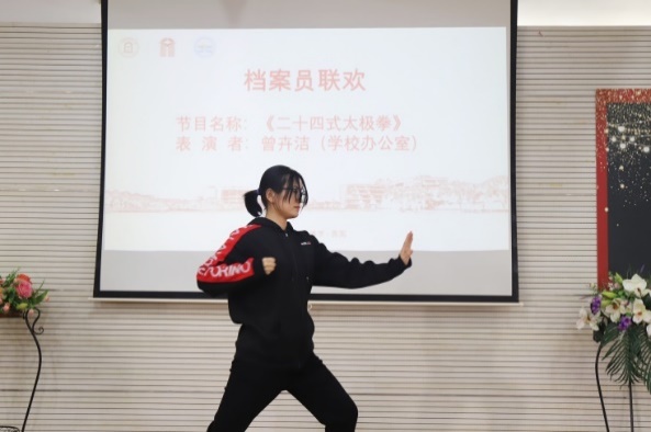 曾卉洁表演《二十四式太极拳》 | 档案联谊会成员演唱《上经贸大校歌》 |