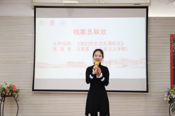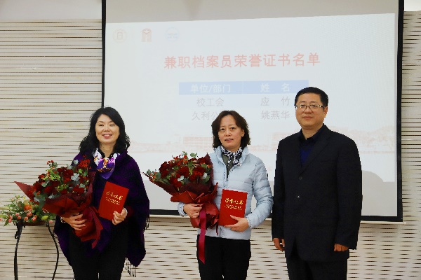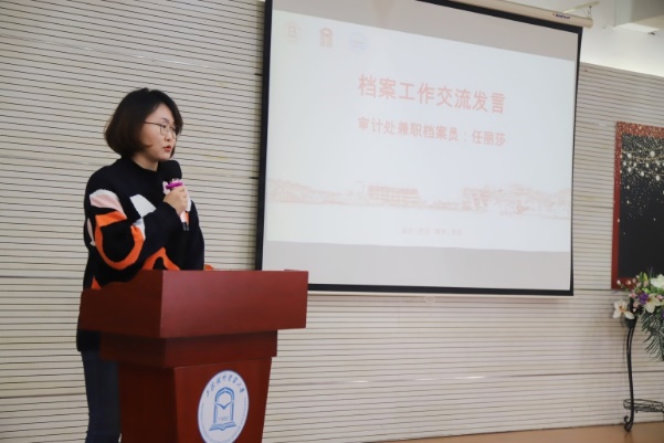 马克思主义学院冯葚蓝、科研处程琳、审计处任丽莎代表优秀兼职档案员交流发言。