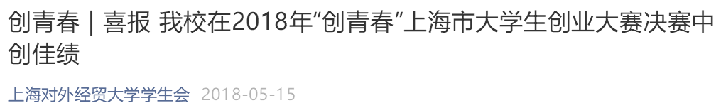 荣获2018年“创青春”上海市大学生创业大赛市级创业计划类铜奖