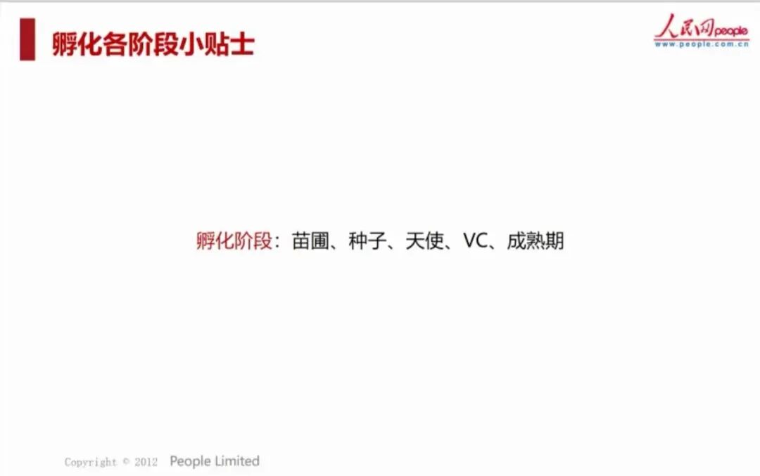 再次,薛老师在创新孵化的苗圃、种子、天使、VC、成熟期各阶段都给我们提出相关建议。