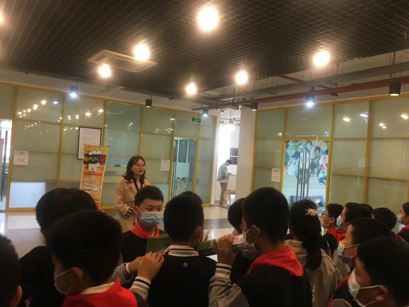 随后,负责讲解的同学带领着小朋友们进入了大厅,依次参观了创中培训室、办公室、师生众创区,让小朋友们了解了创中不同部门的职能以及工作内容,并且解答了小朋友们提出的一些问题。