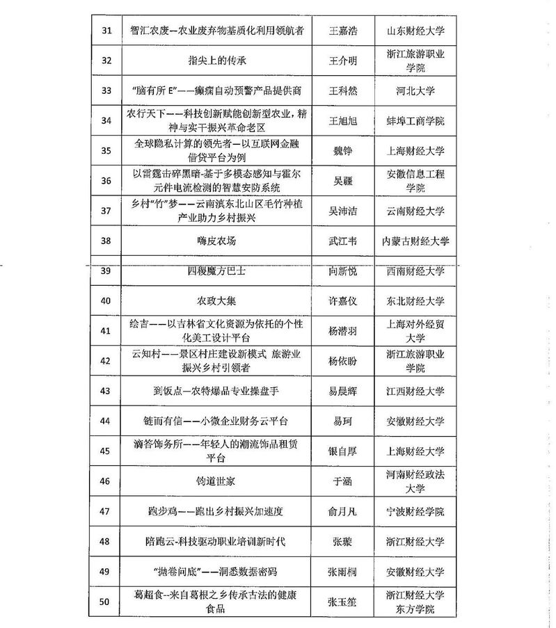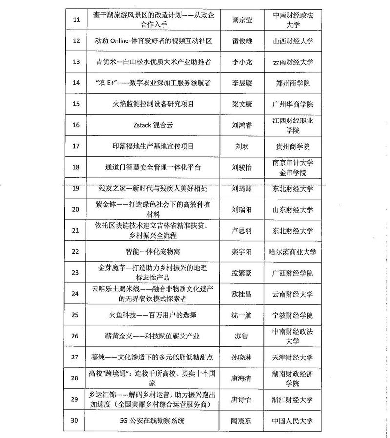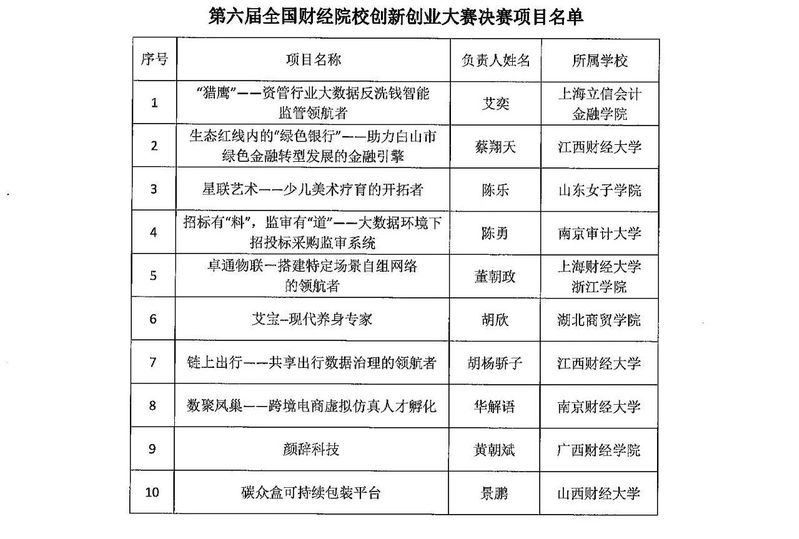 关于发布第六届全国财经院校创新创业大赛决赛项目的通知