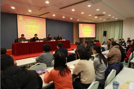 2月25日,我校召开党的群众路线教育实践活动总结大会。市教卫工作党委第四督导组组长黄(日希)建出席会议并进行指导。校党委书记张小松出席会议并讲话,校长孙海鸣主持大会,校党委副书记夏斯云代表学校党委作总结报告。市教卫工作党委第四督导组成员、学校领导班子全体成员、全体中层干部、全国人大代表、市区人大代表和政协委员、市党代会代表、学校党代会代表、各民主党派负责人、群众组织负责人、二级党组织党委委员、总支委员、直属支部委员、教职工支部书记、教授代表、离退休老同志代表、学生党员代表等出席会议。