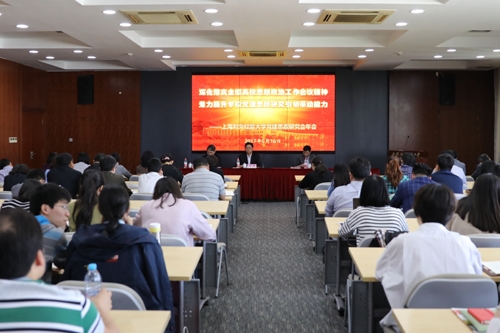 殷耀在讲话中对研究会过去一年的工作表示肯定,对广大思政教师和党务工作者的辛勤付出表示衷心感谢。他指出,学校当前正在深入学习和贯彻落实全国和上海高校思想政治工作会议精神,党建思政研究会要通过加强工作研究不断提升学校党建和思想政治工作水平。他对进一步依托研究会平台,抓好学校党建思政课题研究工作交流了三点意见:一是党建思政研究工作站位要更高。要能贴合时代背景,从全局的视野、战略的高度,从整体上把握新形势对学校党建思政工作提出的新任务、新要求和新挑战,找准研究攻关的重点方向和破解瓶颈问题的切入点,实现理论研究与工作实践的有效对接。二是党建思政研究工作定位要更实。要通过课题研究,更好地把握和遵循思想政治工作规律、教书育人规律和学生成长规律,切实增强大学生和青年教师思想政治工作的针对性与实效性,更好地突显党建工作的统领、带动、服务和保障功能。三是党建思政研究工作带动力要更强。要着力把党建思政研究会打造成学习交流的平台、深化认识的平台、促进工作的平台和落实主体责任的平台;有效促进党务工作队伍和思政工作队伍理论研究水平和实际工作能力的提升,进而实质性地推动两支队伍专业化职业化的建设。