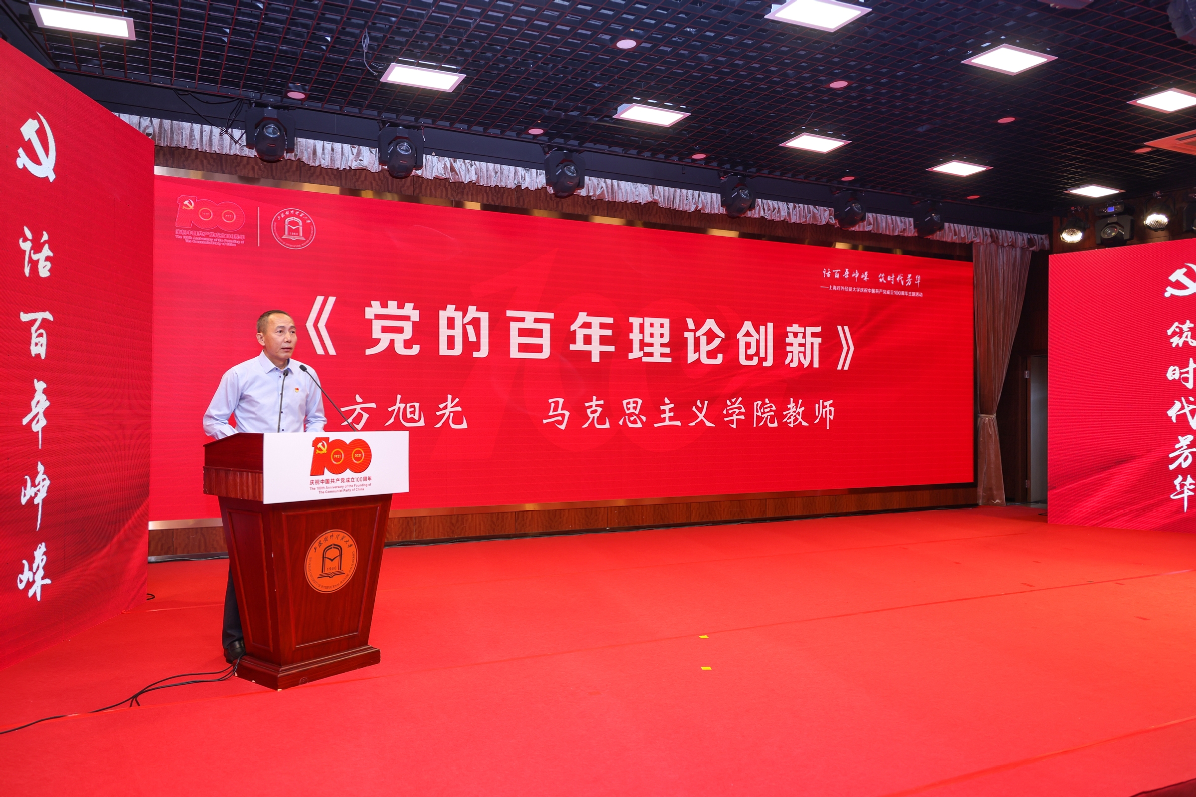 第一篇章专题党课环节,马克思主义学院副教授方旭光聚焦《以真理之光照耀民族复兴大道》主题,从开天辟地、波澜壮阔、理论自信三个方面,系统讲授了百年中国共产党的理论创新及其伟大意义。他表示,星辰大海是我们的向往,但前路不会平坦,有中国共产党的正确领导,有百年奋斗的坚实基础,我们就有坚定的信心,就有足够的底气,任何艰难险阻,都阻挡不了中国前进的步伐。