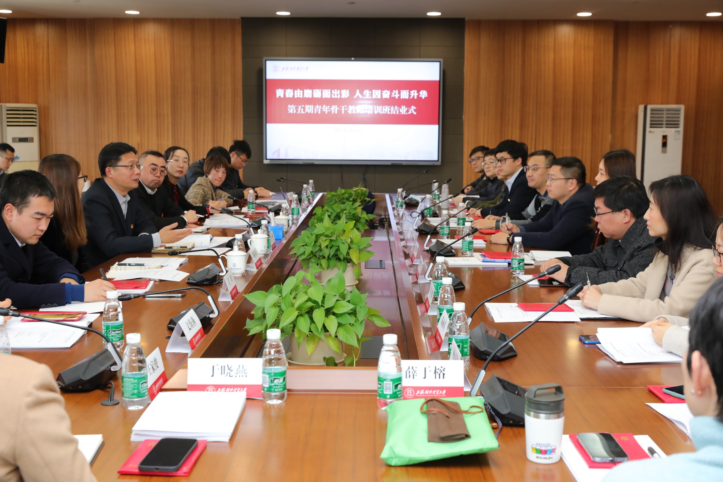 1月19日,学校第五期青年骨干教师培训班结业仪式在德政楼317会议室举行,校党委书记殷耀出席并作讲话,校党委组织部部长、党校常务副校长严大龙,校党委组织部副部长刘素贞,第五期青年骨干教师培训班全体学员与会。结业仪式由严大龙主持。