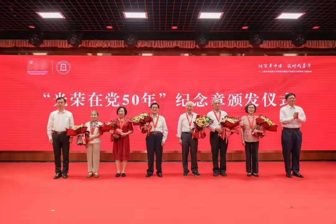 6月29日,学校举行“话百年峥嵘 筑时代芳华”—— “伟大工程”示范党课暨庆祝中国共产党成立100周年主题活动大会。校党委书记殷耀、校长汪荣明向获得纪念章的我校55名老党员代表颁发了纪念章。