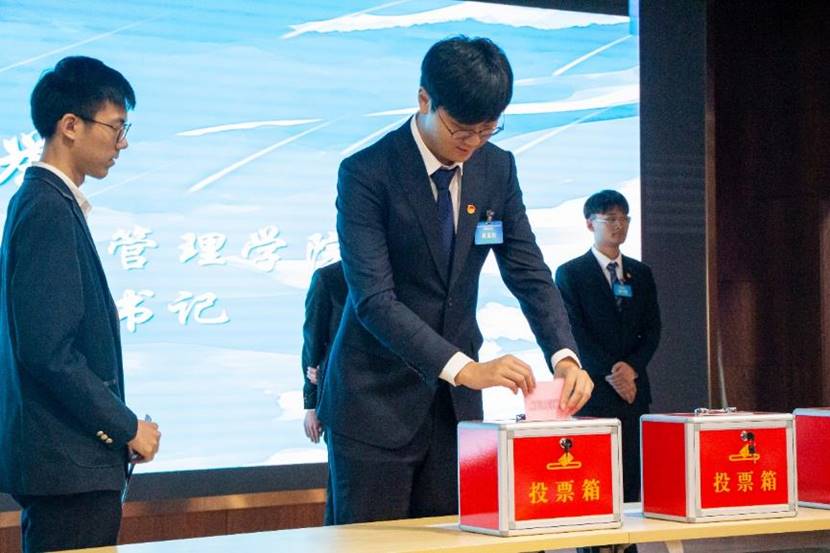 随后,12位金融管理学院第九届学生团委副书记候选人按照会前抽签顺序依次上台演讲。在演讲过程中,各候选人总结了自己过去两年的工作经历,同时对部门未来的发展提出展望,他们的情怀以及对部门的留恋深深打动了台下的学生代表们。在最后一位候选人竞选演讲结束后,各位与会团员代表填写选举选票,并按照相关流程依次上台投出了自己神圣的一票。