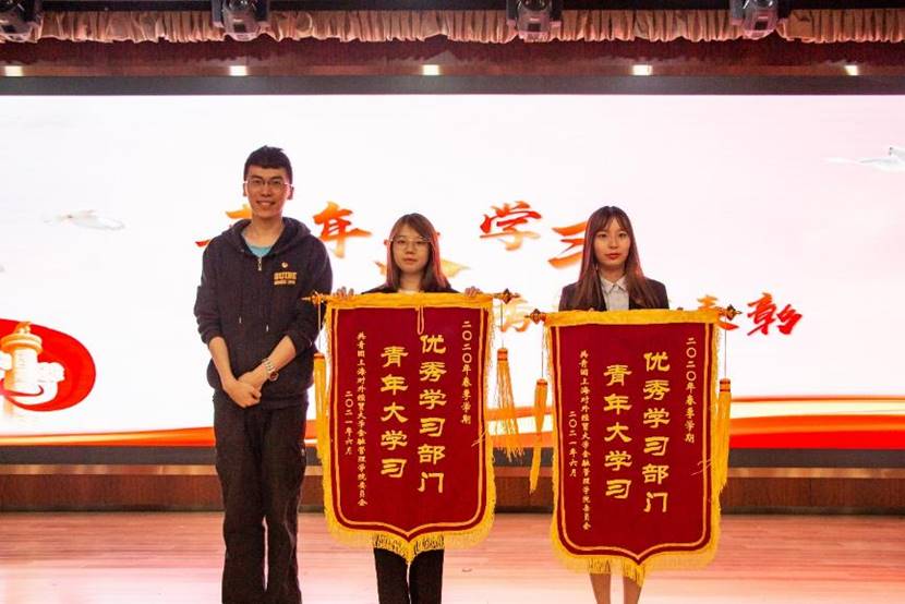 本学期,学院各中心部门也依然积极响应共青团中央关于“青年大学习”网上主题团课的学习行动号召,认真投入到每一期团课的认真学习中。青年中心与传媒中心摄影采编部荣获2020-2021学年第二学期青年大学习优秀部门。在各中心的工作汇报结束后,学院团委书记陆烨磊老师也为“青年大学习”优秀学习部门颁发了表彰锦旗。