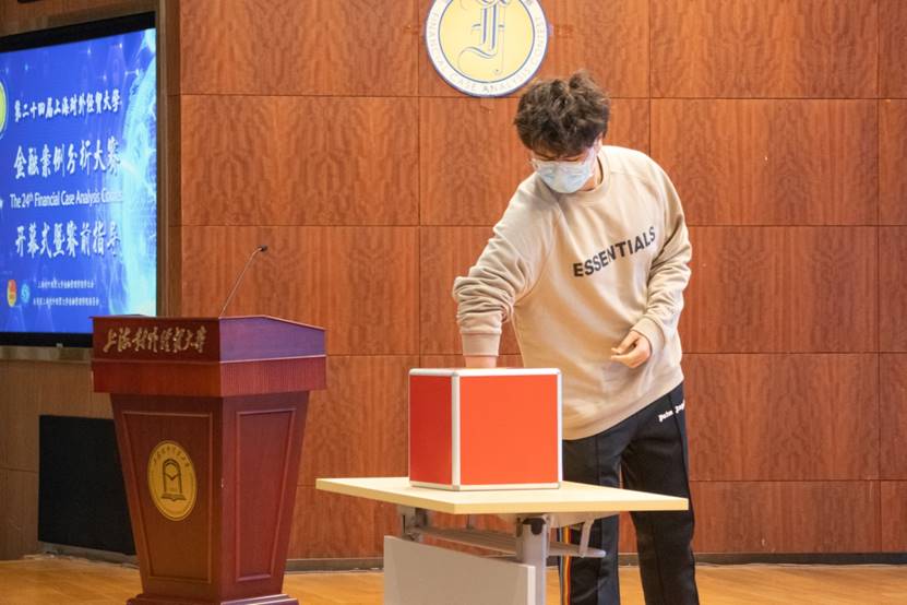 开幕式伊始,金融管理学院学生会主席团成员、本届大赛组委会主任戚正昕同学用全英文的形式讲述了本届上海对外经贸大学金融案例分析大赛的章程及赛程,阐明了本届大赛与往届相比的变化,让参赛选手们对本届大赛的赛制的细节情况有了进一步了解。