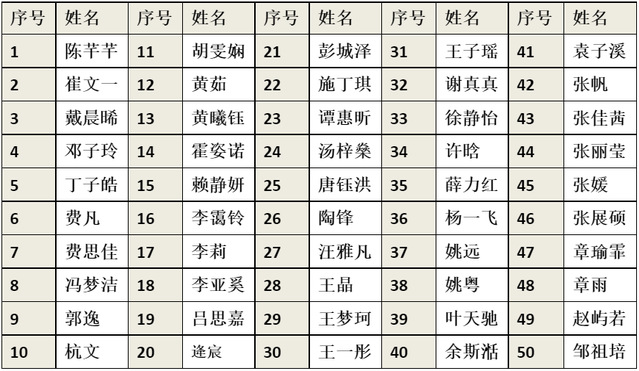 注:以学生姓名拼音的第一个字母排序