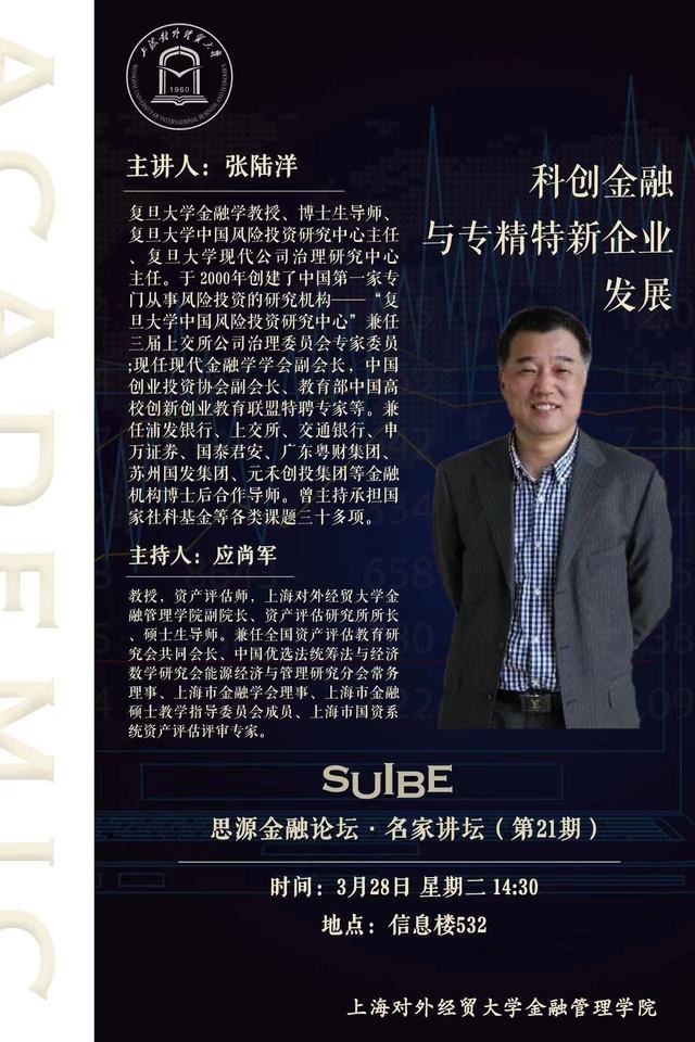 【SUIBE思源金融论坛——名家讲坛第21期】科创金融与专精特新企业发展