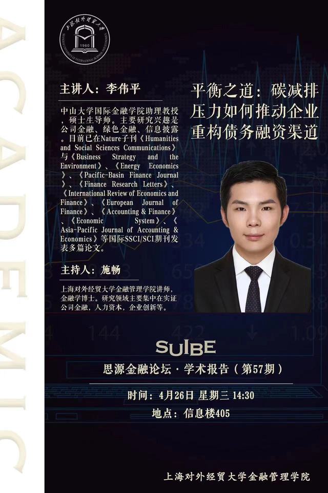 | 学术报告第57期】平衡之道——碳减排压力如何推动企业重构债务融资渠道 - 上海对外经贸大学