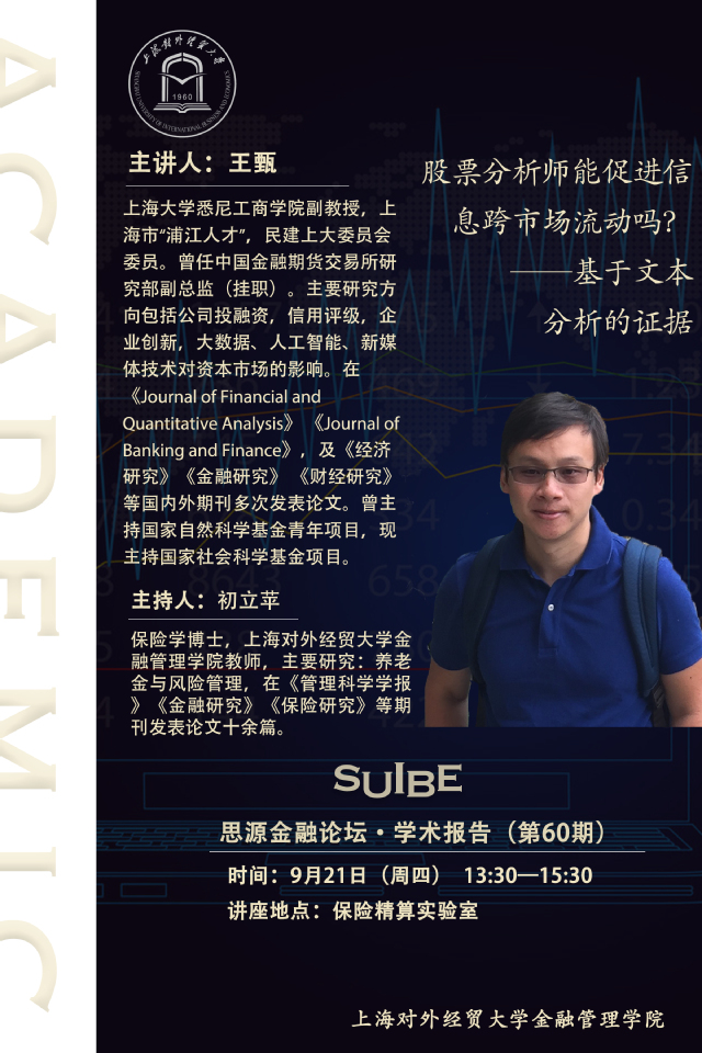 【SUIBE思源金融论坛——学术报告第60期】股票分析师能促进信息跨市场流动吗?——基于文本分析的证据