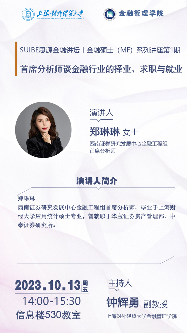 【SUIBE思源金融论坛——金融硕士 (MF) 系列讲座第1期】首席分析师谈金融行业的择业、求职与就业